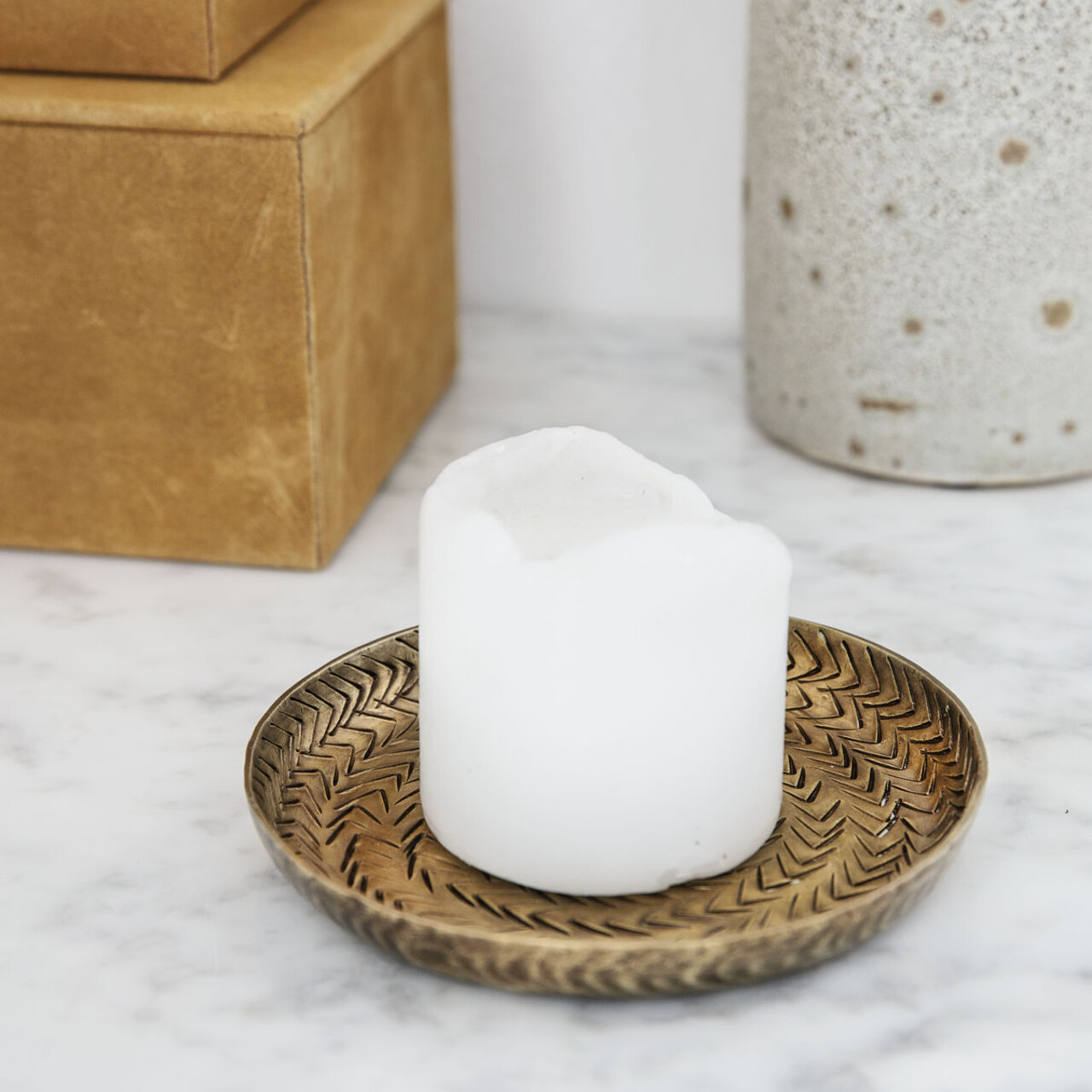 Mit diesem schönen Deko-Tablett von House Doctor können Sie ein schönes Arrangement erstellen. Das Rattan ist ein schönes Tablett, das einen Durchmesser von 12 cm hat. Das Tablett ist allein schön, aber Sie können auch eine Kerze oder ein Teelicht darauf stellen oder es für Ihre Weihnachtsdekoration verwenden. Das Rattan ist aus Aluminium gefertigt, mit einem Muster versehen und mit einer schönen Messingbeschichtung versehen. Die schöne Messingfarbe passt perfekt zum nordischen Dekor und wird Ihrer Einrichtung etwas Wärme verleihen.