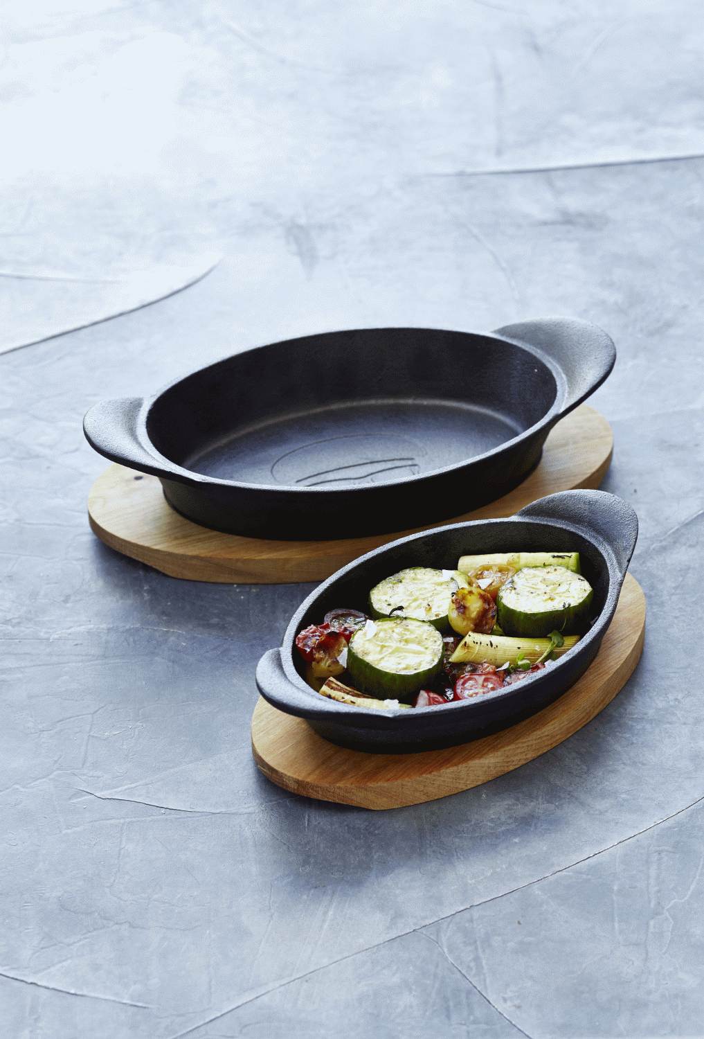 Das mitgelieferte Tischuntersetzer aus Ahornholz verleiht dem Set eine warme, natürliche Note und schützt gleichzeitig deine Tischoberflächen vor dem heißen Gusseisen. Gusseisen ist für seine außergewöhnliche Fähigkeit bekannt, Wärme gleichmäßig und effizient zu speichern und zu verteilen, was dieses Tablett ideal für Servieren und Kochen macht.