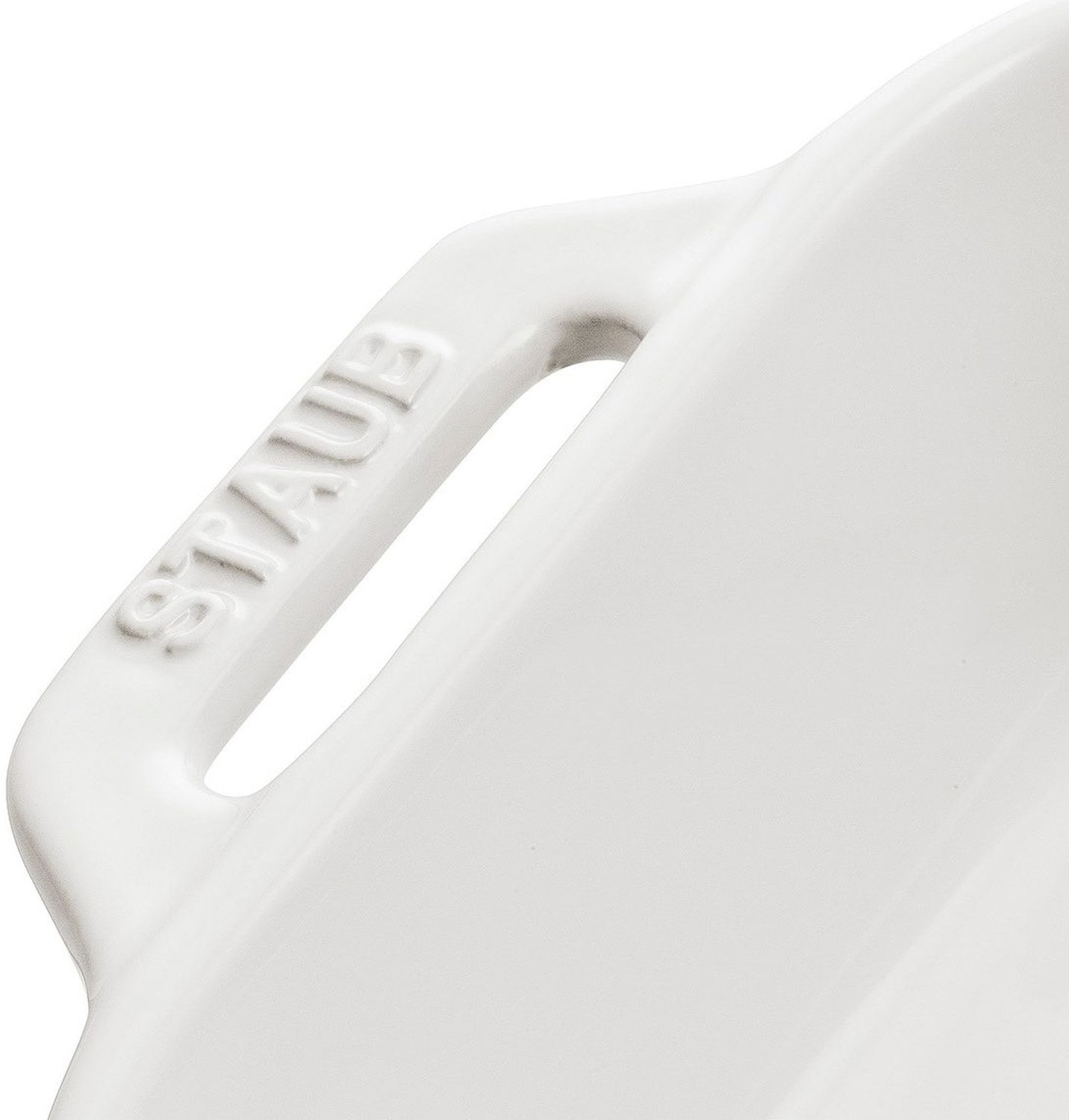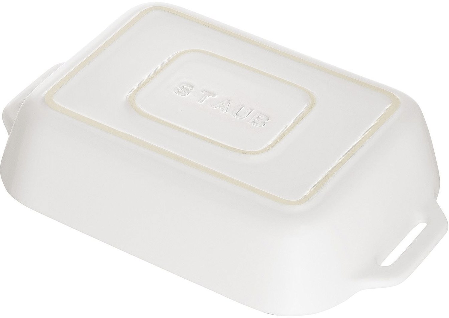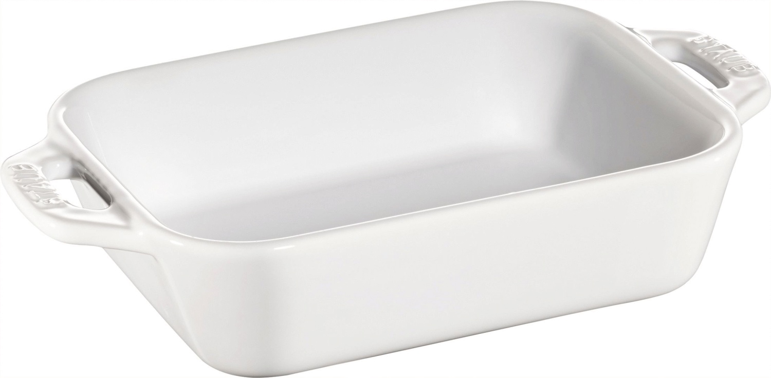 Diese elegante Keramik-Auflaufform von Staub vereint Funktionalität mit zeitlosem Design und wird zu deinem perfekten Begleiter für die tägliche Küche. Die rechteckige Form in dezenter weißer Farbe fügt sich natürlich in jede Kücheneinrichtung ein und macht es dir leicht, appetitliche Gerichte wie Lasagne, Gratin oder sogar selbstgebackenen Kuchen zuzubereiten.Mit ihren kompakten Maßen von 18,7 x 12,2 cm und einer Höhe von 4,4 cm ist diese Form ideal dimensioniert für die Zubereitung von Mahlzeiten für zwei Personen. Die weiße Keramikglasur verleiht nicht nur ein wunderschönes Aussehen, sondern gewährleistet auch eine hygienische Oberfläche, die nach dem Gebrauch unglaublich leicht zu reinigen ist.