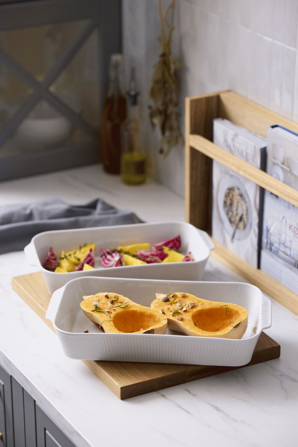 Das hochwertige weiße Porzellan schafft den perfekten neutralen Rahmen für deine Gerichte – ob hausgemachte Lasagne, bunte Gemüsegratins oder köstliche Tartes. Dank der speziellen Porzellanmasse und dem Brennverfahren bei extrem hohen Temperaturen erhältst du außergewöhnliche Haltbarkeit und Funktionalität. Die beiden Formen trotzen problemlos thermischen Schocks von -30°C bis +350°C, sodass du sie direkt aus dem Gefrierschrank in den heißen Ofen stellen kannst – ideal für deine Meal-Prep-Routine.