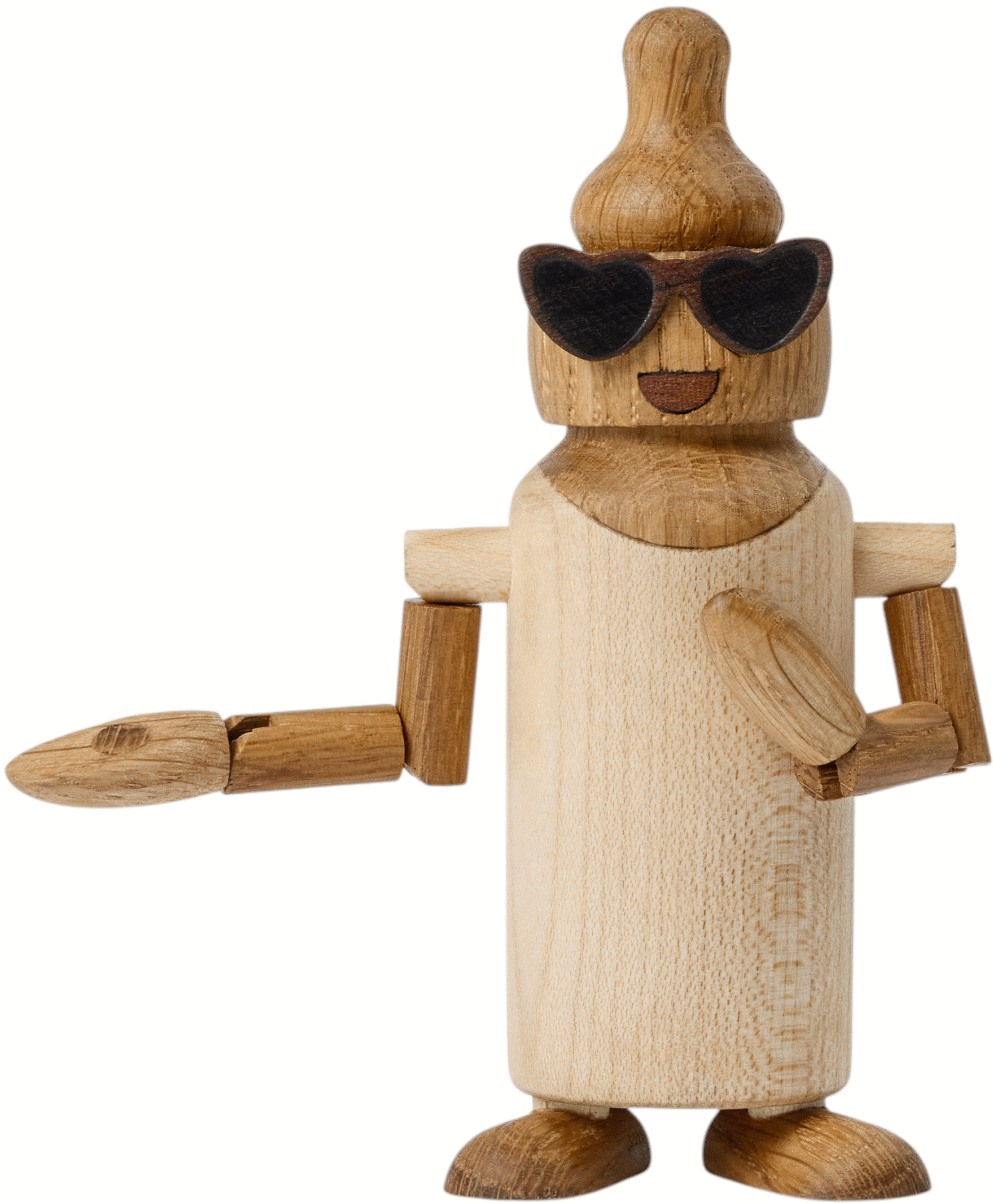 Jede Billie Baby Bottle wird mit größter Sorgfalt und Aufmerksamkeit für Details handgeschnitzt, wodurch jede einzelne Flasche zu einem kleinen Kunstwerk wird. Das natürliche Ahornmaterial hebt die wunderschöne Holzstruktur hervor und verleiht dem Produkt eine zeitlose Eleganz, die perfekt zur modernen skandinavischen Einrichtung passt. Die Woodies-Serie von Spring Copenhagen zelebriert die Freuden des Alltags durch verspielte und humorvolle Holzfiguren, die sowohl Kinder als auch Erwachsene begeistern.