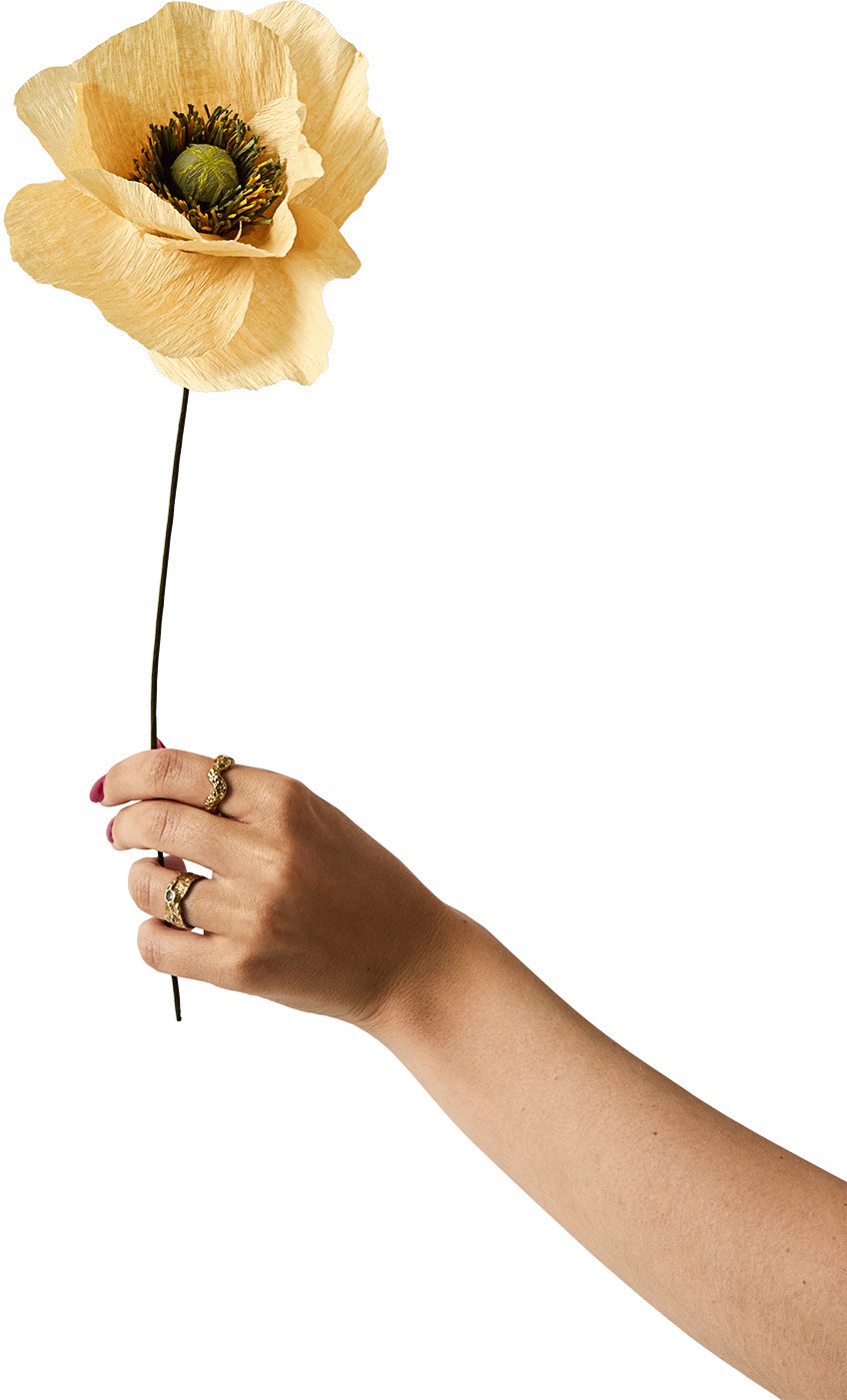 Diese bezaubernde Papierblume von Studio About verwandelt dein Zuhause in ein kunstvolles Paradies voller skandinavischer Eleganz. Die 40 cm hohe Papaver-Blüte in der zarten Soft Peach Nuance entsteht durch die meisterhafte Zusammenarbeit mit der Papierkünstlerin Kristina Sørensen von Labdecor und verkörpert das Beste aus skandinavischer Designtradition gepaart mit modernem Handwerk.Das durchgefärbte Krepppapier in der wunderschönen Pfirsichfarbe bringt Wärme und Eleganz in jeden Raum deines Zuhauses. Der biegsame grüne Stiel lässt sich mühelos nach deinen Wünschen formen, sodass du die Höhe und Form der Blume perfekt an den gewünschten Platz anpassen kannst. Der Name Papaver stammt von der bekannten Mohnblume, die für ihre feinen, papierartigen Kronblätter und lebendigen Farben berühmt ist.