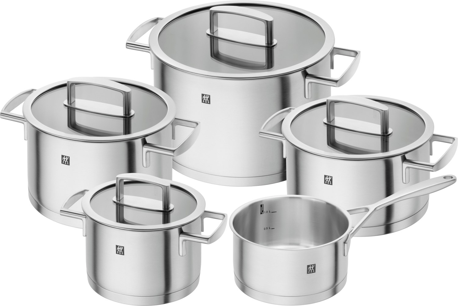 - Komplettes 5-teiliges Set mit Töpfen in 16, 20 und 24 cm sowie Bratpfanne und Stielkasserolle