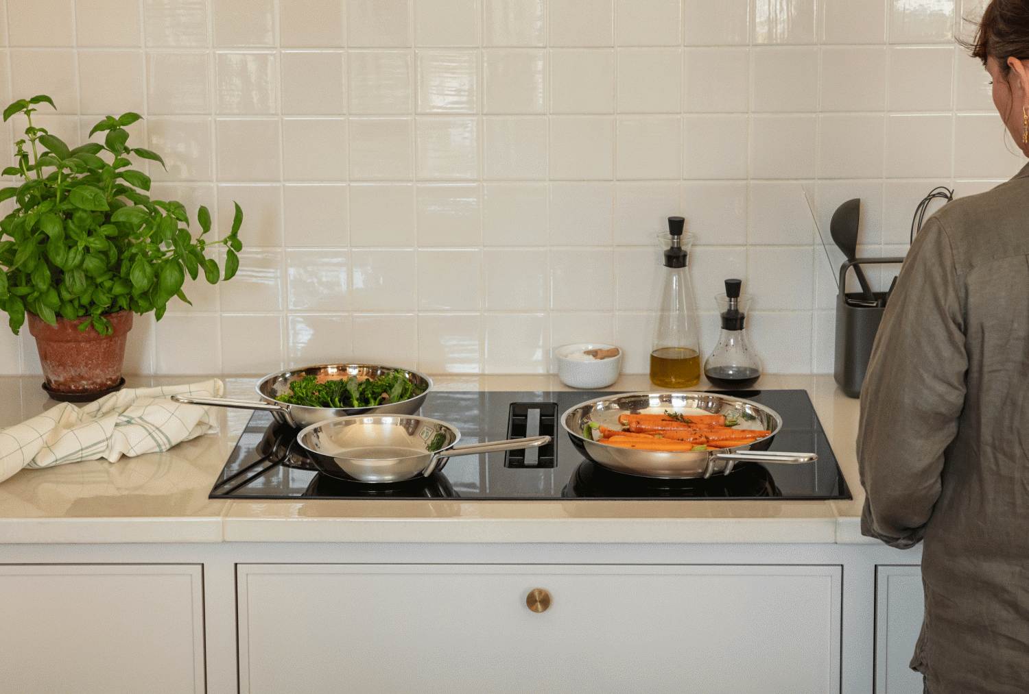 - Massiver Sandwichboden mit Aluminium und Edelstahl für gleichmäßige Wärmeverteilung
