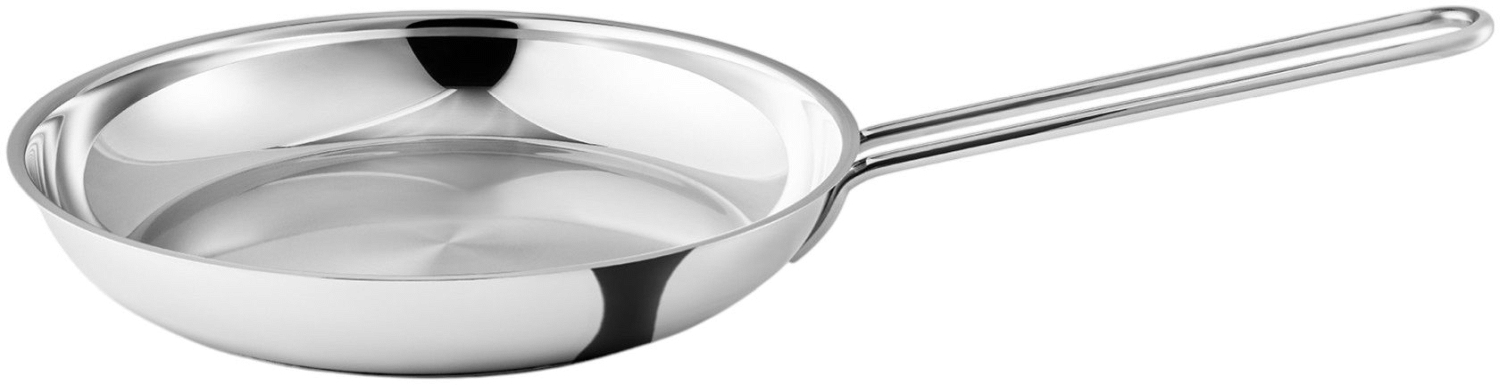 Mit dieser Bratpfanne aus reinem Edelstahl holst du dir ein Stück skandinavischer Küchenkultur ins Haus, das nicht nur durch seine Langlebigkeit überzeugt, sondern auch durch die Fähigkeit, perfekte Bratergebnisse zu liefern. Zugegeben, Edelstahl erfordert ein wenig Übung, doch sobald du den Dreh raus hast, wirst du mit einer knusprigen Kruste und intensivem Geschmack belohnt – Ergebnisse, die für sich sprechen. Die Eva Trio Bratpfanne mit Stahlboden ist für alle gemacht, die Wert auf Qualität und Funktionalität legen und Küchenhelfer suchen, die Generationen überdauern.Das Herzstück dieser Pfanne ist ihr Korpus aus 90 % recyceltem Post-Consumer-Edelstahl – ein robustes Material, das hohen Temperaturen und intensiver Nutzung mühelos standhält. Edelstahl ist bekannt für seine außergewöhnliche Haltbarkeit: Du kannst bedenkenlos Metallbesteck verwenden und die Pfanne sogar mit einem Stahlschwamm reinigen, ohne Schäden befürchten zu müssen. Bei richtiger Pflege wird dich diese Pfanne viele Jahre lang begleiten.
