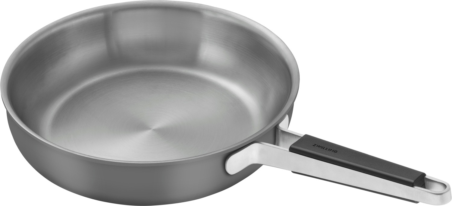 Mit der Zwilling Pure Bratpfanne in Grau holst du dir ein Kochgeschirr ins Haus, das funktionale Perfektion mit zeitloser Eleganz vereint. Die raffinierte graue Außenseite fügt sich mühelos in jedes Küchenambiente ein – ob dein Stil modern, klassisch oder minimalistisch ist, diese Pfanne wird zum harmonischen Bestandteil deiner Küchenausstattung. Als erste Dreischichtpfanne aus Edelstahl mit farbiger Keramik-Außenbeschichtung setzt die Pure-Serie von Zwilling neue Maßstäbe im Bereich hochwertiger Kochutensilien.Die innere Oberfläche besteht aus unbeschichtetem 18/10 Edelstahl und bietet dir optimale Kontrolle über den Bratvorgang. Dieses Material eignet sich hervorragend zum Anbraten von Steaks, Koteletts und anderem Fleisch, wenn du eine perfekte Kruste und maximale Geschmacksentfaltung erzielen möchtest. Die robuste Konstruktion garantiert Langlebigkeit und Widerstandsfähigkeit gegen täglichen Gebrauch, sodass diese Pfanne zu einem verlässlichen Partner in deiner Küche wird.