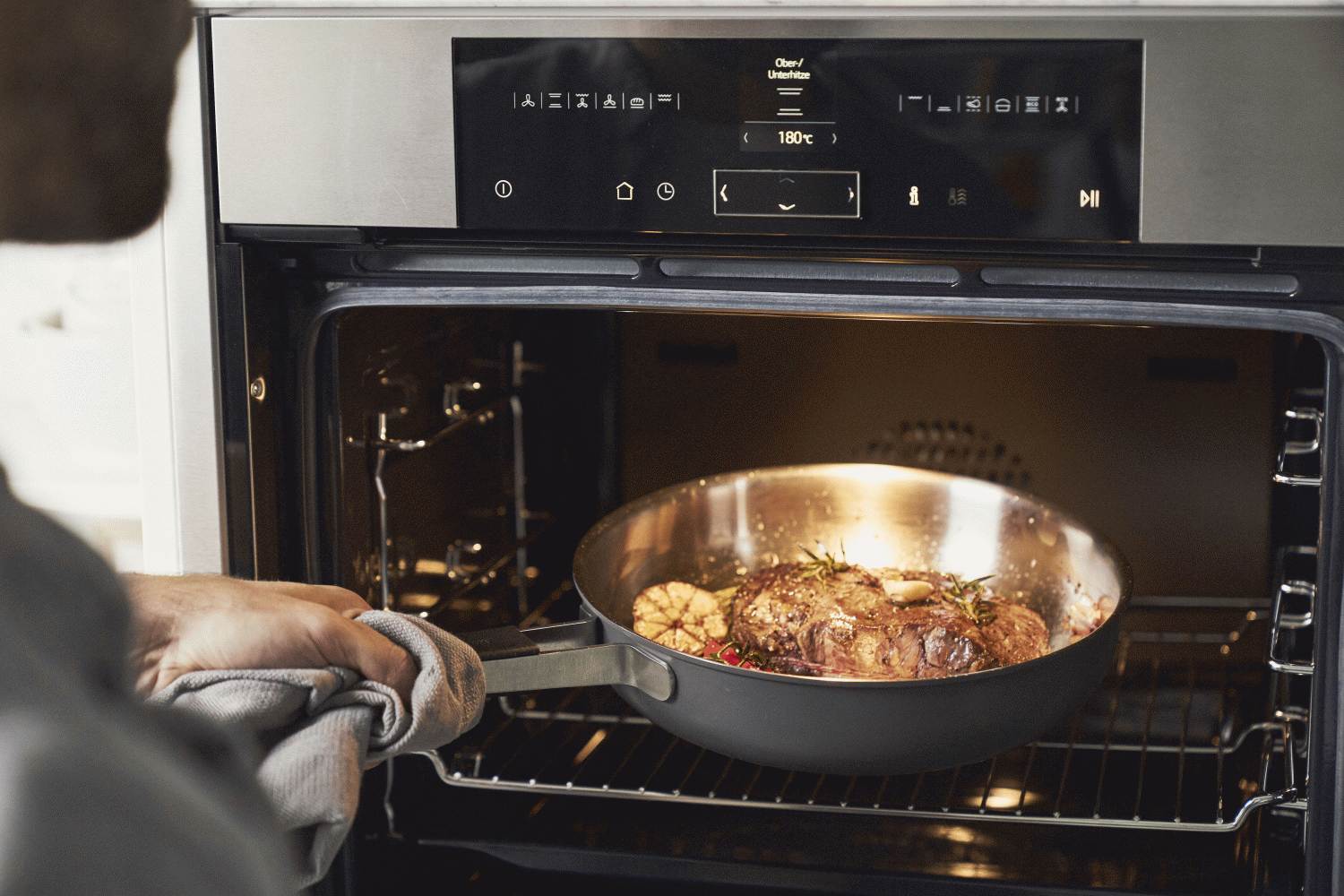 - Unbeschichtetes 18/10 Edelstahl innen – ideal zum Anbraten von Fleisch