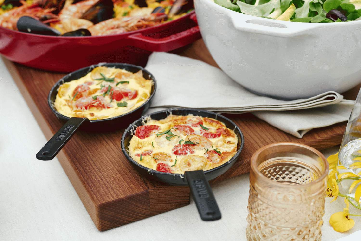 Diese kompakte Bratpfanne von Staub verwandelt deine Küche in eine professionelle Kochstation und bringt französische Kochkunst direkt zu dir nach Hause. Mit ihren 12 cm Durchmesser ist sie wie geschaffen für individuelle Portionen - ob du nun eine perfekte Omelette zubereitest, luftige Pfannkuchen backst oder andere kulinarische Köstlichkeiten kreierst.Die Gusseisenkonstruktion dieser eleganten Mini-Bratpfanne garantiert dir eine außergewöhnliche Wärmeverteilung selbst bei hohen Temperaturen. Dadurch werden alle Zutaten gleichmäßig gegart und du erzielst stets professionelle Ergebnisse. Die innovative schwarze emaillierte Beschichtung auf der Innenseite reduziert den Fettbedarf erheblich und schafft optimale Bratbedingungen für geschmackvolle Resultate.