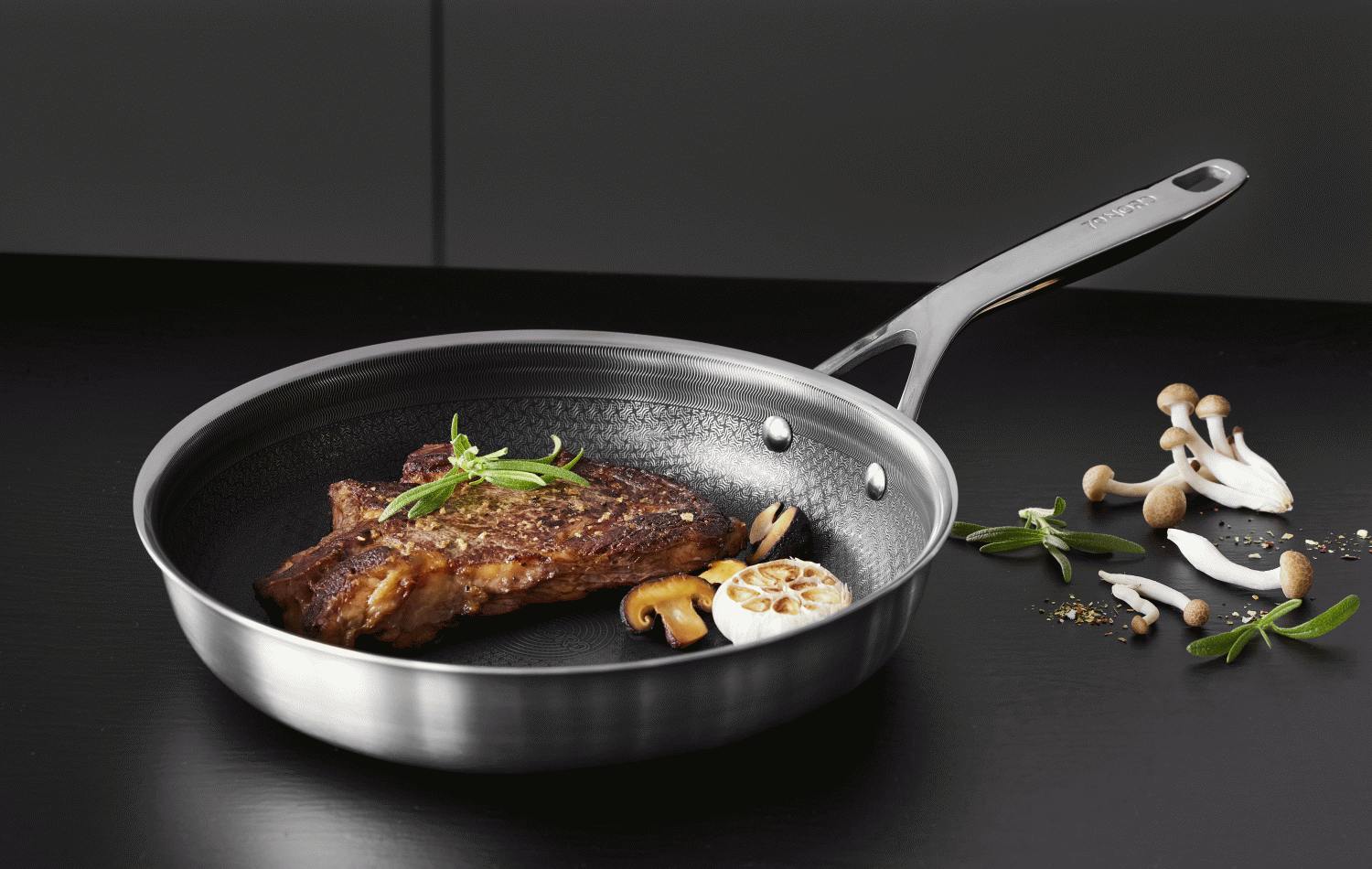 Die einzigartige Hybridbeschichtung stellt ein technologisches Meisterwerk dar: Ein elegantes, erhöhtes Muster aus rostfreiem Stahl kombiniert sich mit einer 2-lagigen keramischen Beschichtung – komplett PFAS-frei für gesünderes Kochen. Das wellenförmige Muster, inspiriert von den Gewässern rund um die Insel Mors, schützt die keramische Beschichtung und verlängert die Lebensdauer der Pfanne erheblich. Gleichzeitig macht die Antihaft-Oberfläche das Kochen leichter und die Reinigung schneller.