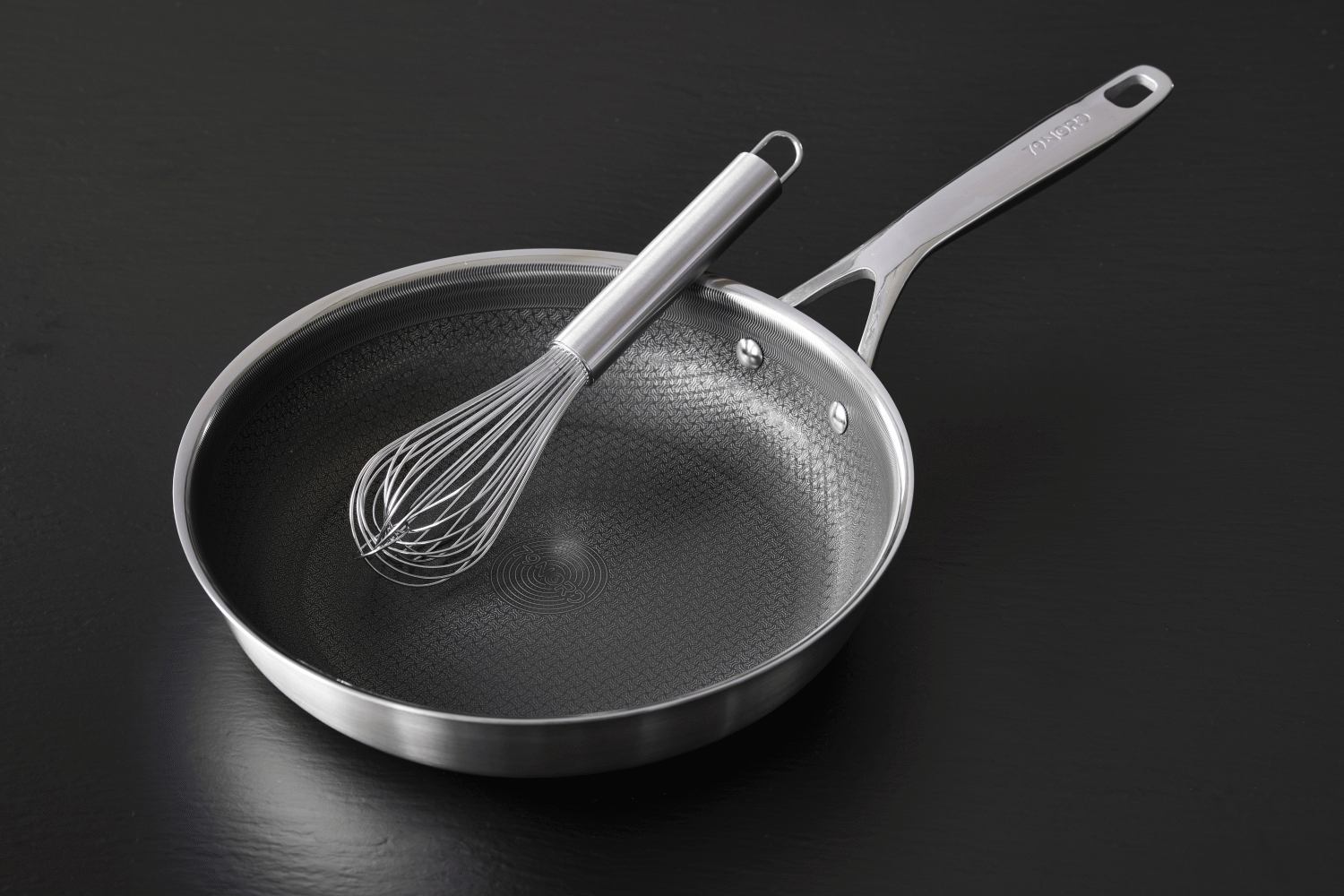 Das Herzstück dieser Bratpfanne ist die innovative Hybridbeschichtung, die Morsø zu einem Vorreiter in der nachhaltigen Küchenausstattung macht. Das durchdachte Design kombiniert ein erhabenes Muster aus rostfreiem Stahl mit einer 2-lagigen keramischen Beschichtung, die vollständig PFAS-frei ist. Dieses Muster schützt die Beschichtung vor Abnutzung, während die keramische Oberflächenbeschichtung hervorragende Antihaft-Eigenschaften bietet – für gesünderes und müheloseres Kochen.