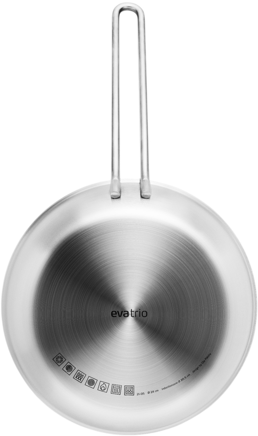 Die Nachhaltigkeit steht bei dieser Bratpfanne im Vordergrund: Der Korpus besteht aus einer durchdachten Kombination von 90 Prozent recyceltem Post-Consumer-Edelstahl und 100 Prozent recyceltem Post-Consumer-Aluminium. Diese umweltfreundliche Materialwahl zeigt Eva Trios Engagement für verantwortungsvolle Produktion.