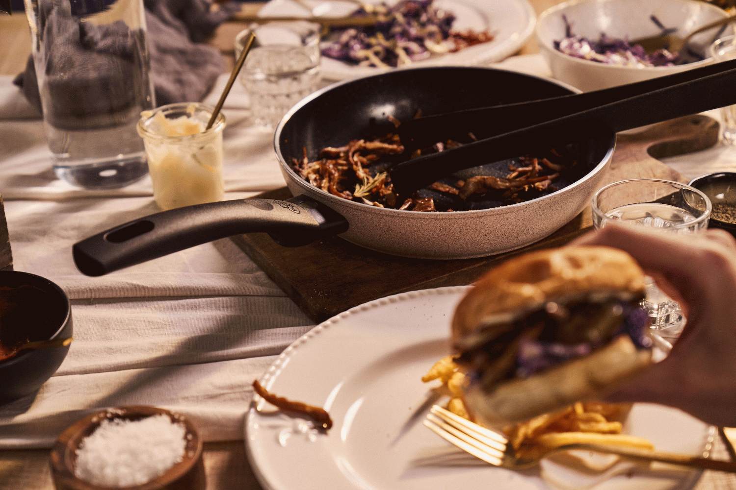 Das Herzstück dieser 28 cm Bratpfanne besteht aus recyceltem Aluminium, das nicht nur eine optimale Wärmeverteilung gewährleistet, sondern auch die Umweltbelastung reduziert. Der ergonomische Griff wurde zu 37% aus biobasierten Materialien gefertigt und unterstreicht BALLARINIs Engagement für nachhaltige Produktion, ohne dabei Funktionalität oder Komfort zu beeinträchtigen.