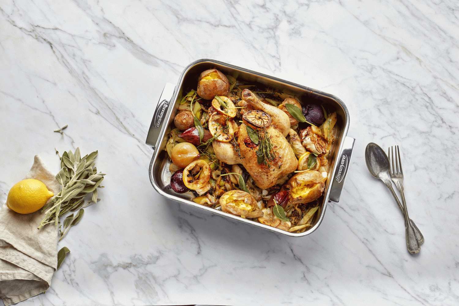 Die einzigartige 5-Schicht-Konstruktion sorgt für eine perfekte Wärmeverteilung bis zu den Rändern, sodass deine Spareribs, Gemüsegratins oder marinierten Fischstücke gleichmäßig garen und die gewünschte goldbraune Oberfläche erhalten. Du kannst die Zutaten zunächst auf dem Herd anbraten, wo der kraftvolle Boden optimale Wärmeleitung gewährleistet, und die Form anschließend direkt in den Ofen schieben.