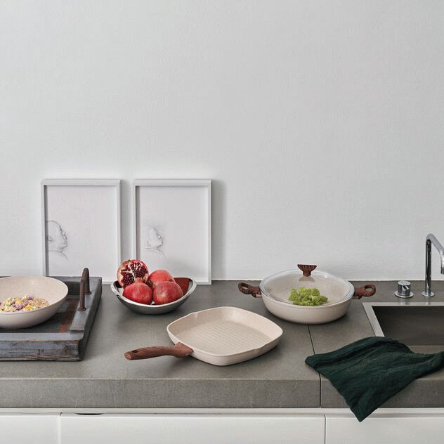 Die hellrosa Farbe ist weit mehr als nur ein optisches Highlight – sie steht für Energie, Leidenschaft und Aufmerksamkeit bei der Zubereitung köstlicher Gerichte. Diese Farbwahl macht die Grillpfanne zu einem echten Blickfang in modernen Küchen, die Wert auf stilvolles Design und praktische Funktionalität legen. Der Griff mit Holzeffekt überzeugt durch seine ergonomische Form und die Soft-Touch-Oberfläche, die dir ein angenehmes und sicheres Handling während des Kochens bietet.