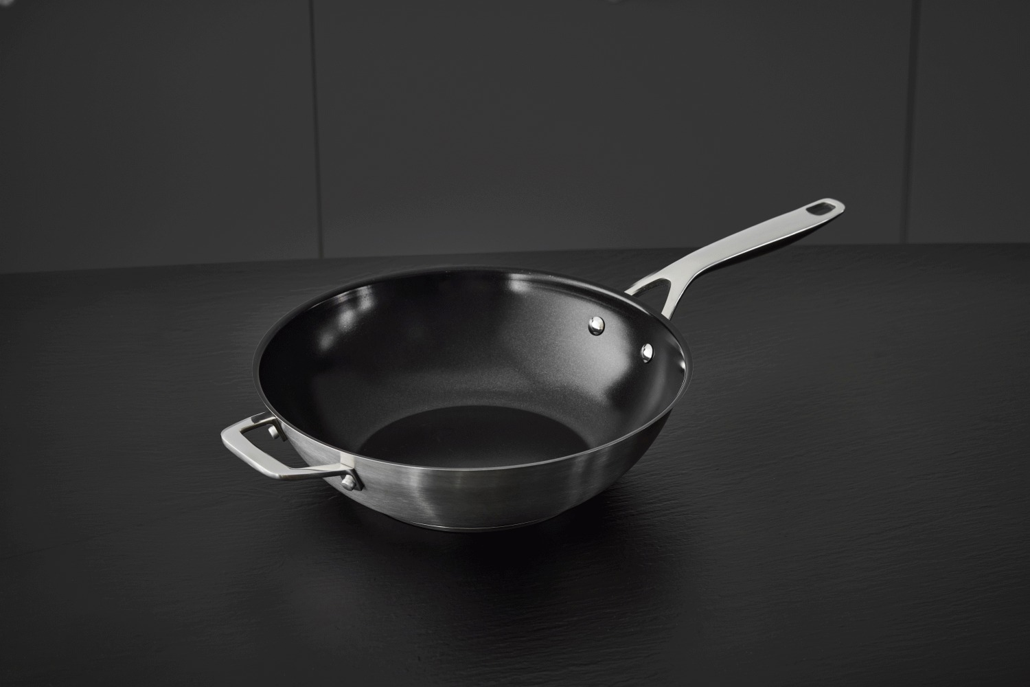 Diese professionelle Wok aus der 79NORD-Serie von Morsø verwandelt deine Küche in einen Ort kulinarischer Meisterschaft. Mit ihrer durchdachten Konstruktion und hochwertigen Materialien bringt sie das Beste aus der skandinavischen Designtradition und moderner Funktionalität zusammen.Das erstklassige 18/8 Edelstahlmaterial mit eleganter Satinoberfläche sorgt für eine gleichmäßige Wärmeverteilung und außergewöhnliche Langlebigkeit. Die innovative 2-Schicht-Keramik-Antihaftbeschichtung macht das Kochen nicht nur gesünder, da du minimal Fett benötigst, sondern verhindert auch zuverlässig das Anbrennen oder Anhaften der Speisen während der Zubereitung.