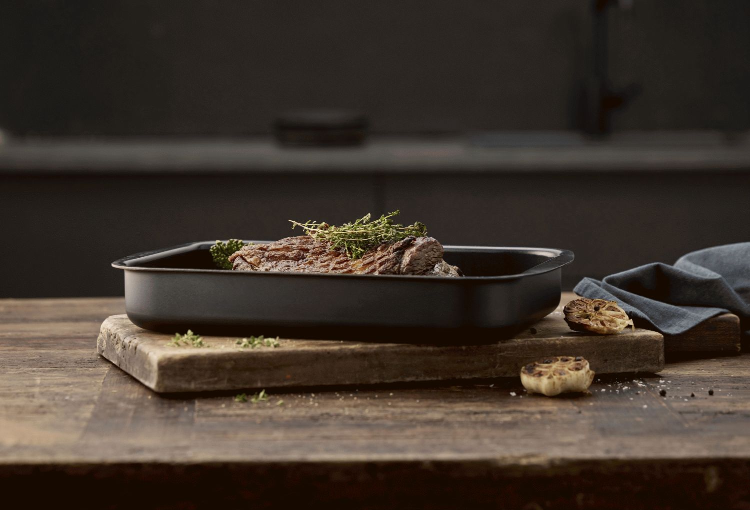 Diese vielseitige Backform hält Temperaturen bis zu 220 Grad im Ofen stand und eignet sich damit für die meisten Back- und Brataufgaben in deiner Küche. Die praktischen Abmessungen von 25x35 cm mit einer Tiefe von 6 cm bieten ausreichend Platz für Braten, Aufläufe und verschiedenste Backwaren. Das elegante schwarze Finish fügt sich harmonisch in jede Kücheneinrichtung ein und unterstreicht die skandinavische Designphilosophie von Qualität und Funktionalität.