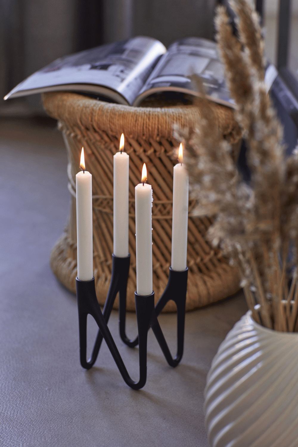 Das Besondere an diesem Kerzenständer liegt in seiner modulären Bauweise, die dir völlige Gestaltungsfreiheit bietet. Du kannst die vier Arme ganz nach deinen Vorstellungen anordnen und so verschiedene Kerzenkonfigurationen schaffen – ob drei, fünf, sechs oder mehr Kerzen, alles ist möglich. Diese Anpassungsfähigkeit macht ihn zum idealen Begleiter für gemütliche Alltagsabende ebenso wie für festliche Zusammenkünfte.