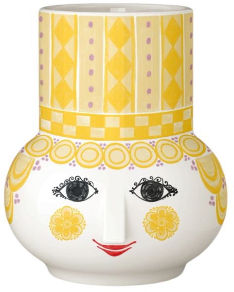 Der Kerzenständer besticht durch sein süßes, rundes Gesicht, das Bjørn Wiinblads unverwechselbare Handschrift trägt - die mandelförmigen Augen und die charakteristische dreieckige Nase. Diese liebevollen Details verwandeln jeden Kerzenständer in ein kleines Kunstwerk, das Leben und Atmosphäre in dein Zuhause bringt. Die klare gelbe Farbe mit hellgelben Tönen und lavendelfarbenen Punkten verleiht einen frischen, modernen Ausdruck, der sowohl zu klassischen als auch zu zeitgenössischen Einrichtungsstilen passt.