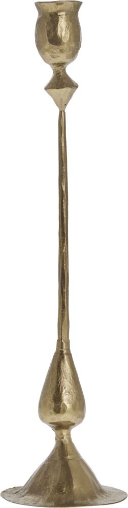 Die schlanke Silhouette mit einer Höhe von 33,5 cm schafft eine imposante vertikale Dimension, die sofort alle Blicke auf sich zieht und jedem Raum eine besondere Atmosphäre verleiht. Das luxuriöse goldene Finish verleiht dem Kerzenhalter einen edlen Charakter, während das robuste Eisenmaterial für außergewöhnliche Haltbarkeit und Stabilität sorgt. Die sanft geschwungenen Details und die subtile Oberflächentextur verleihen dem Design Tiefe und Charakter, wodurch jeder Kerzenhalter zu einem einzigartigen Kunstwerk wird.