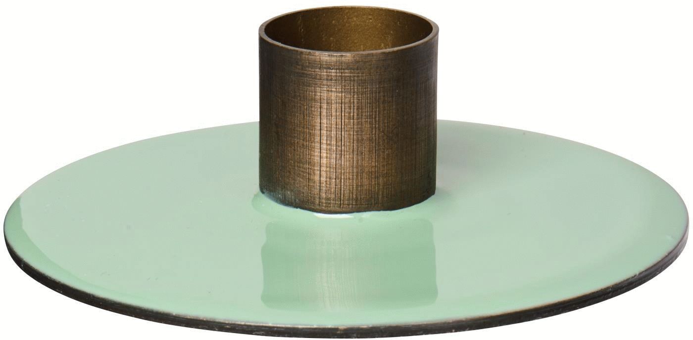 Mit seiner kompakten Höhe von nur 2,5 cm fügt sich dieser Kerzenhalter harmonisch in jede Raumgestaltung ein, ohne dabei aufdringlich zu wirken. Die Bronze-Elemente strahlen Wärme und Elegance aus, während die grünen Details eine frische, natürliche Note einbringen – genau das, was skandinavisches Design so besonders macht. Diese durchdachte Farbgebung macht den Kerzenhalter zu einem vielseitigen Dekorationselement, das sich mühelos in deine bestehende Einrichtung integriert.