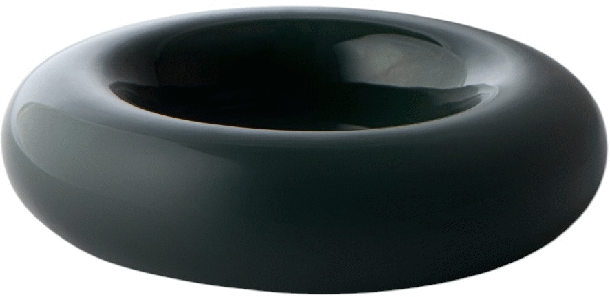 Architekt Mikkel Lang Mikkelsen hat diesen Kerzenhalter mit Fokus auf voluminöse Formen und weiche Kanten entworfen, wodurch ein zeitloses und elegantes Erscheinungsbild entsteht. Die glänzende glasierte Oberfläche reflektiert das Kerzenlicht wunderschön und erzeugt eine warme, einladende Atmosphäre in jedem Raum. Selbst ohne Kerze fungiert der Halter als dekoratives Objekt, das durch seine sophistizierte dunkelgrüne Farbe einen reizvollen Kontrast zu hellen Blockkerzen bildet.