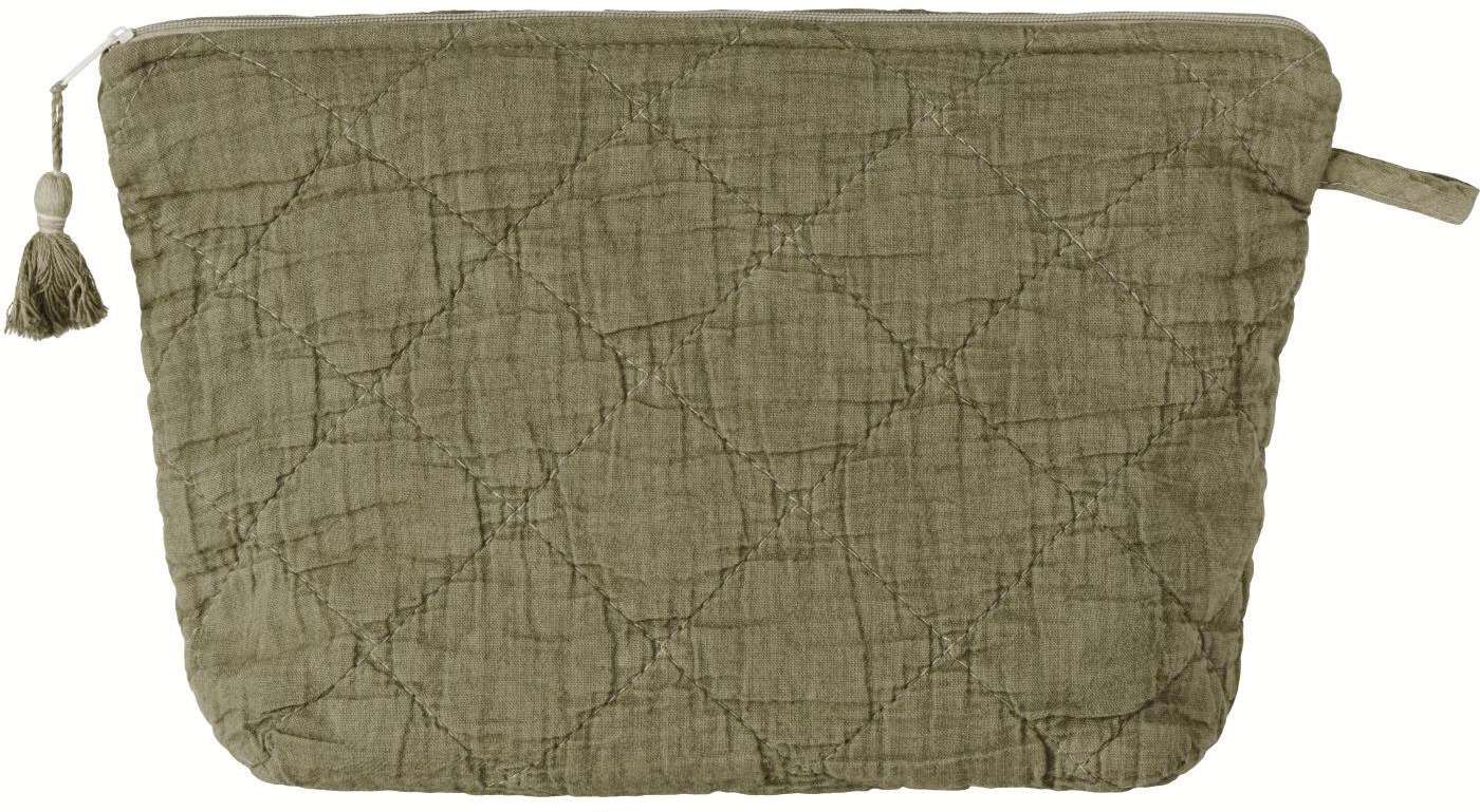 Diese wunderschöne gesteppte Kosmetiktasche von Ib Laursen bringt skandinavische Eleganz und praktische Funktionalität in perfekter Harmonie zusammen. Die beruhigende eucalyptus green Farbe verleiht deinem Badezimmer oder Reisegepäck einen natürlichen und harmonischen Touch, der typisch für das zeitlose Design des dänischen Herstellers ist.Die Tasche ist aus weicher Baumwolle mit gesteppter Oberfläche gefertigt, die nicht nur optisch ansprechend wirkt, sondern auch optimalen Schutz für den Inhalt bietet. Die durchdachte Konstruktion mit Polyesterfüllung sorgt für eine angenehme Polsterung, die deine Makeup- und Pflegeprodukte sowohl beim Transport als auch im täglichen Gebrauch sicher aufbewahrt.