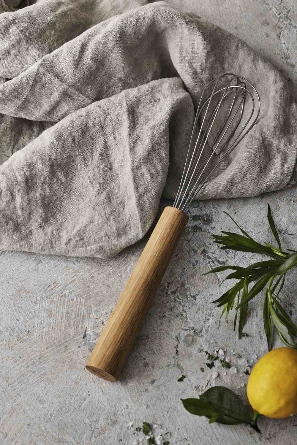 Als lebendiges Material wird das Eichenholz mit der Zeit eine wunderschöne Patina entwickeln. Für den optimalen Start empfiehlt sich eine Behandlung mit geschmacksneutralem Speiseöl wie Traubenkernöl vor der ersten Nutzung. Reibe das Öl mit einem sauberen Tuch ein, lass es mindestens 6 Stunden einziehen und entferne überschüssiges Öl. Nach 24 Stunden Wartezeit ist dein Schneebesen einsatzbereit.