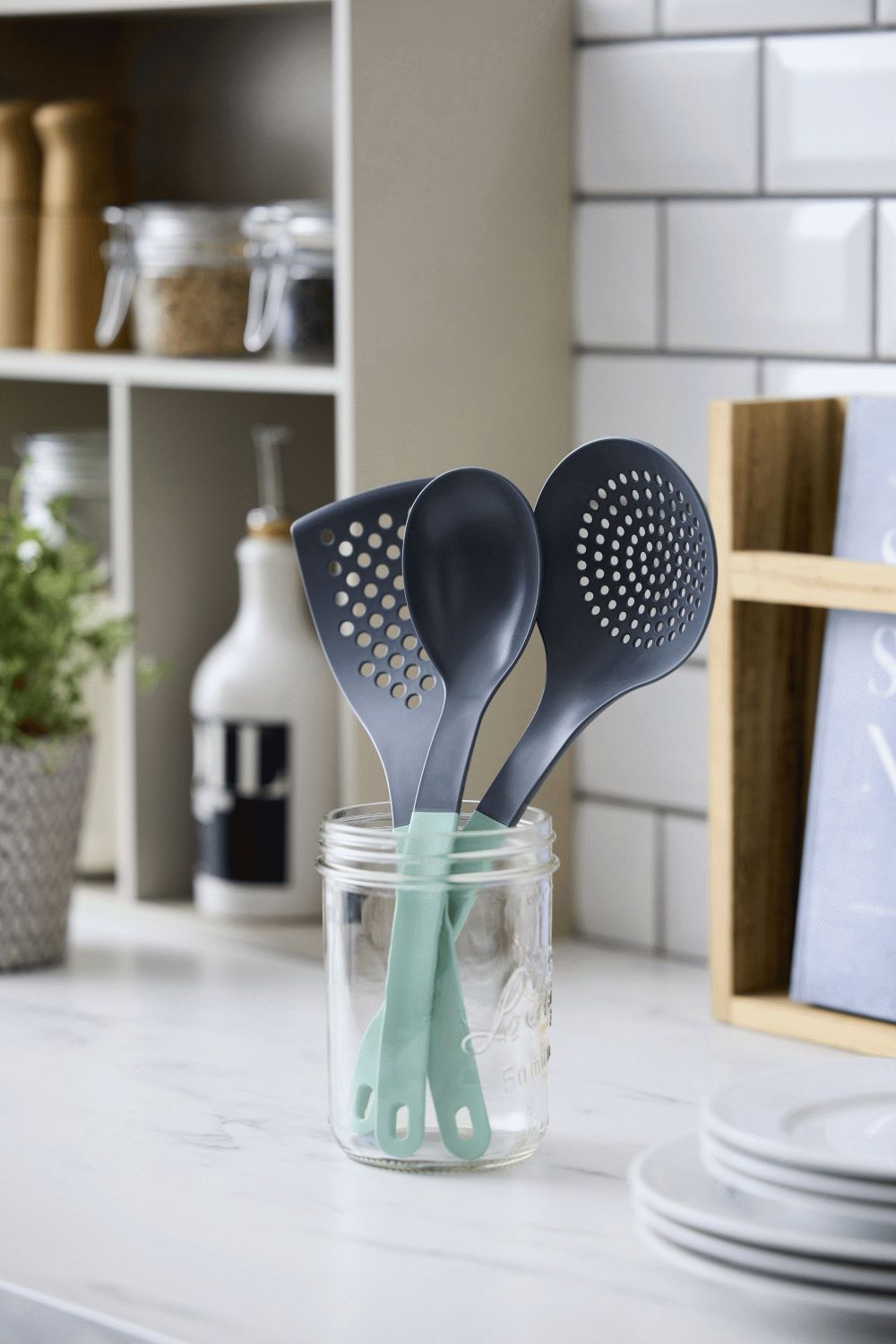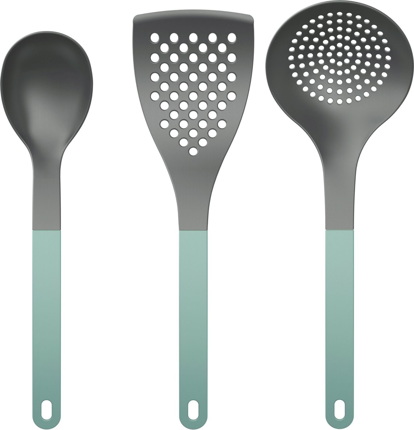 Mit diesem eleganten Küchenutensilien-Set in der frischen Nordic Green Farbe verleihst du deinem Kochbereich sofort einen Hauch skandinavischer Eleganz. Das vielseitige 3-teilige Rosti Optima Set vereint Funktionalität mit durchdachtem Design und macht das Kochen spürbar einfacher und effizienter. Die geschmackvolle grüne Farbe fügt deiner Küchenausstattung ein stilvolles Element hinzu, während die praktische Formgebung sicherstellt, dass die Utensilien perfekt in der Hand liegen.Das Set besteht aus drei unverzichtbaren Küchenhelfern: einem Servierlöffel, der sich ideal zum direkten Servieren vom Topf zum Teller eignet, einer großen Palette mit perforiertem Blatt, die sowohl Fleisch als auch Gemüse mühelos bewältigt, sowie einem geräumigen Schaumlöffel, der feste Zutaten effektiv von Flüssigkeiten trennt. Diese durchdachte Zusammenstellung deckt die wichtigsten Kochfunktionen ab und macht das Set zu einem wertvollen Begleiter in jeder Küche.