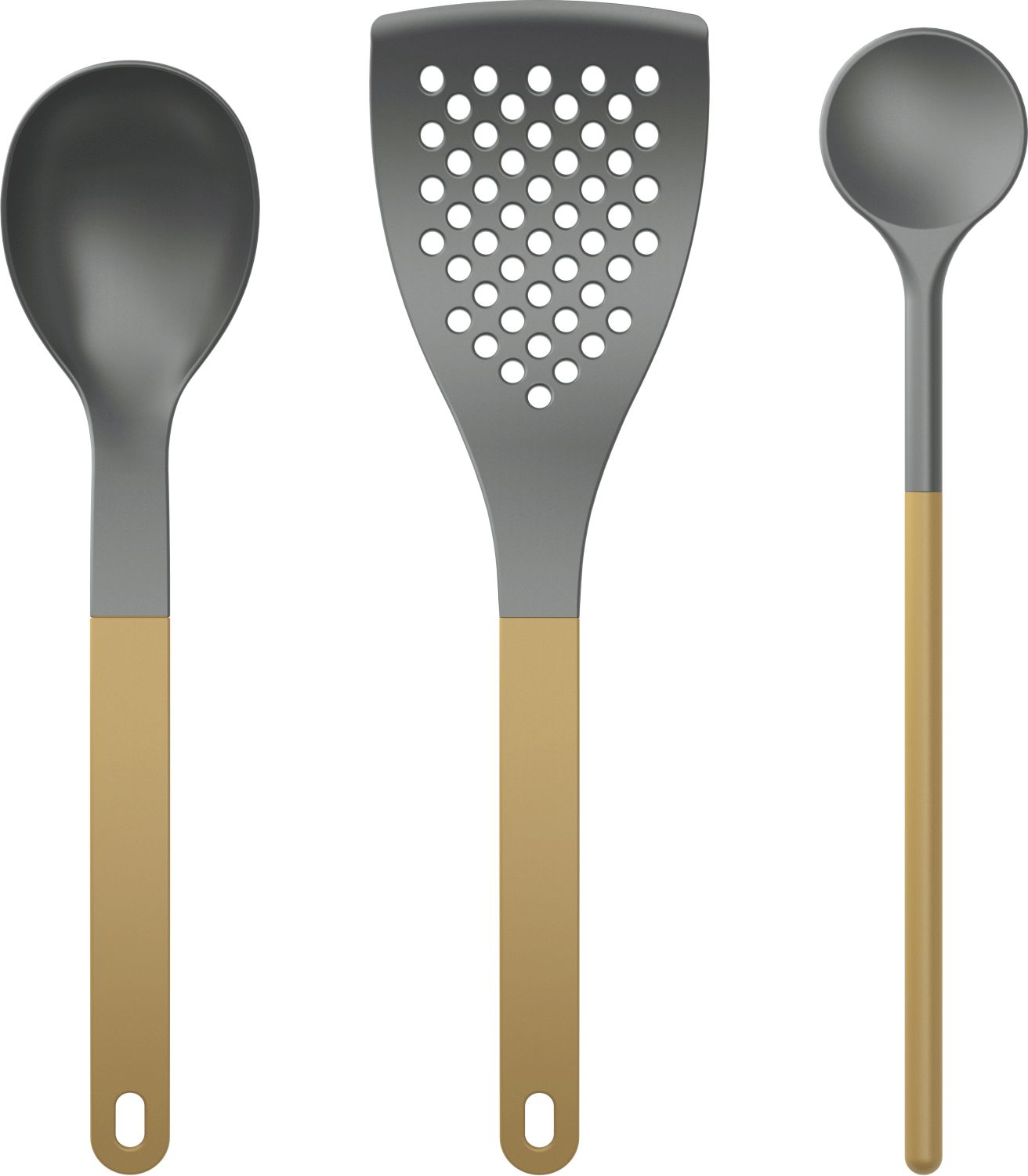 Mit diesem durchdachten Küchenutensilien-Set von Rosti bringst du skandinavische Qualität und warme Farbtöne in dein Zuhause. Die drei sorgfältig gestalteten Utensilien in der einladenden Curry-Farbe vereinen klassisches dänisches Design mit durchdachter Funktionalität und machen das Kochen sowohl einfacher als auch farbenfroher.Das Set besteht aus drei unverzichtbaren Küchenhelfern, die alle deine grundlegenden Bedürfnisse beim Kochen abdecken. Der 29 cm lange Servierlöffel eignet sich perfekt zum direkten Servieren vom Topf auf den Teller. Die große Palette mit 31 cm Länge verfügt über ein perforiertes Blatt mit praktischen 8,5 cm Breite, wodurch sie ideal für die Handhabung von Fleisch und Gemüse in der Pfanne ist. Der ebenfalls 31 cm lange Rührlöffel besitzt einen Kopf mit 5,5 mm Durchmesser und eine spitze Kante, die es dir ermöglicht, auch die Ecken deiner Töpfe perfekt zu erreichen.