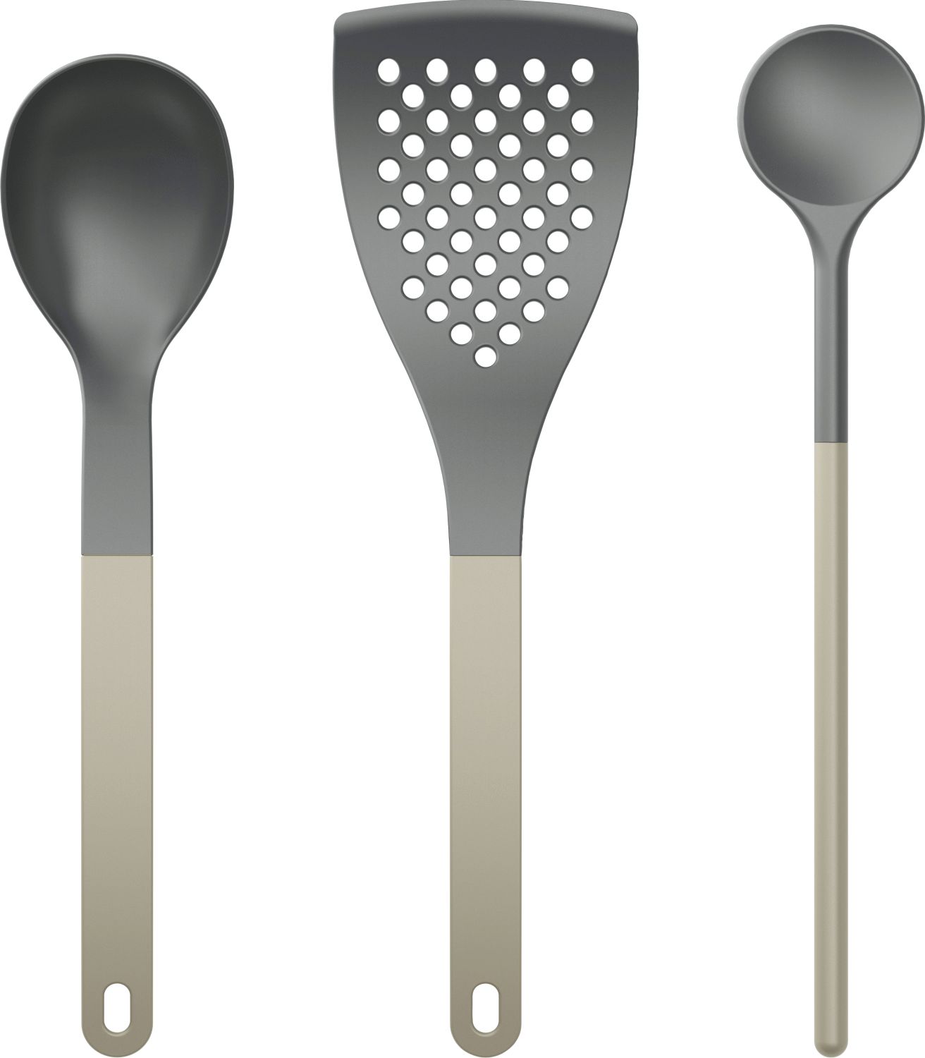 Mit diesem praktischen Küchenutensilien-Set von Rosti Optima holst du dir drei unverzichtbare Helfer in der warmen Humus-Farbe in dein Zuhause, die Funktionalität und skandinavische Ästhetik perfekt vereinen. Das Set stammt von Rosti, einem renommierten Hersteller für hochwertige Küchenprodukte, der Langlebigkeit mit durchdachtem Design kombiniert und das Kochen sowohl einfacher als auch angenehmer gestaltet.Das durchdachte 3er-Set besteht aus einem 29 cm langen Servierlöffel, der sich perfekt zum Kochen und Servieren eignet. Seine praktische Länge ermöglicht es dir, tief in Töpfe und Schüsseln zu greifen, während du ihn direkt vom Herd zum Esstisch bringen kannst. Die große Palette mit 31 cm Länge verfügt über ein perforiertes Blatt mit 8,5 cm Breite, wodurch sie ideal zum Wenden und Anheben größerer Fleisch- oder Gemüsestücke in der Pfanne ist, ohne dass diese abrutschen. Der ebenfalls 31 cm lange Rührlöffel besitzt einen gut dimensionierten Kopf mit 5,5 mm Durchmesser und einer spitzen Kante, die es dir ermöglicht, bis ganz an den Topfrand zu gelangen, sodass nichts anbrennt.