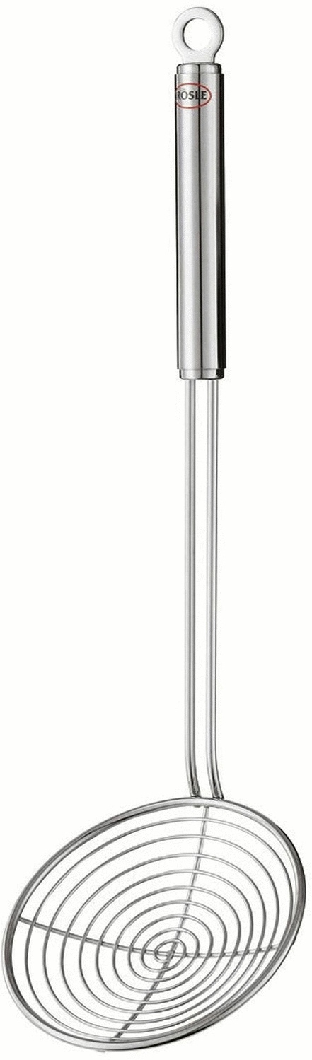 Mit diesem hochwertigen Seihlöffel von Rösle holst du dir ein professionelles Küchenwerkzeug in deine Küche, das Präzision und Funktionalität perfekt vereint. Der 38,5 cm lange Frittierlöffel wurde speziell entwickelt, um frittierte Speisen mit maximaler Effizienz zu handhaben und dabei optimale Ergebnisse zu erzielen.Die durchdachte Konstruktion mit großzügigen Abständen zwischen den Stahldrähten sorgt dafür, dass überschüssiges Öl schnell und gründlich von deinen frittierten Gerichten abtropft. Das Resultat sind knusprigere und weniger fettige Speisen, die deine Gäste begeistern werden. Der robuste Edelstahl garantiert nicht nur Langlebigkeit, sondern verkörpert auch das zeitlose Design, für das Rösle weltweit geschätzt wird.