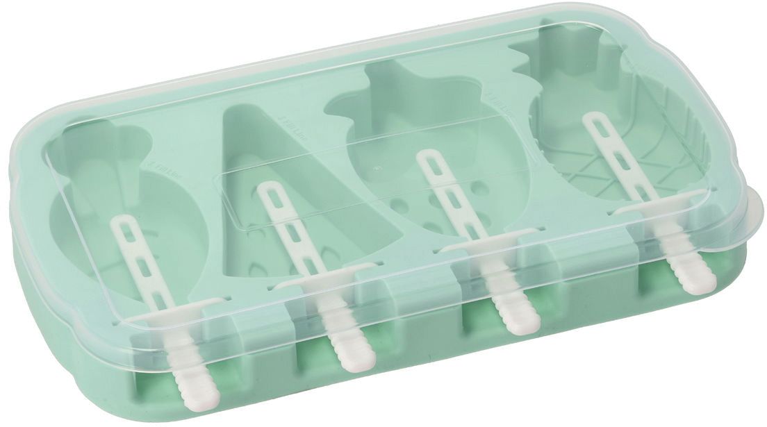 Mit dieser praktischen Eisstielform aus weichem Silikon zauberst du im Handumdrehen frische, selbstgemachte Eisstiele für die ganze Familie. Die Form bietet Platz für vier Eisstiele gleichzeitig, jeder geformt wie verschiedene Früchte, die für eine spielerische und farbenfrohe Präsentation sorgen. Sie ist die perfekte Lösung für heiße Sommertage oder als gesunde Nascherei, die deine Kinder lieben werden.Die Form ist mit Blick auf Benutzerfreundlichkeit gestaltet. Das weiche Silikonmaterial macht es kinderleicht, die fertigen Eisstiele ohne Mühe herauszunehmen, während der mitgelieferte Deckel dafür sorgt, dass die Stiele während des Gefrierens stabil sitzen. Du kannst die Form mit allem füllen, was dir schmeckt – von frisch gepressten Säften und Smoothies über Fruchtpüree bis hin zu selbstgemachtem Eis. Deiner Fantasie sind keine Grenzen gesetzt. Die Plastikstiele sind im Lieferumfang enthalten, sodass du sofort loslegen kannst.