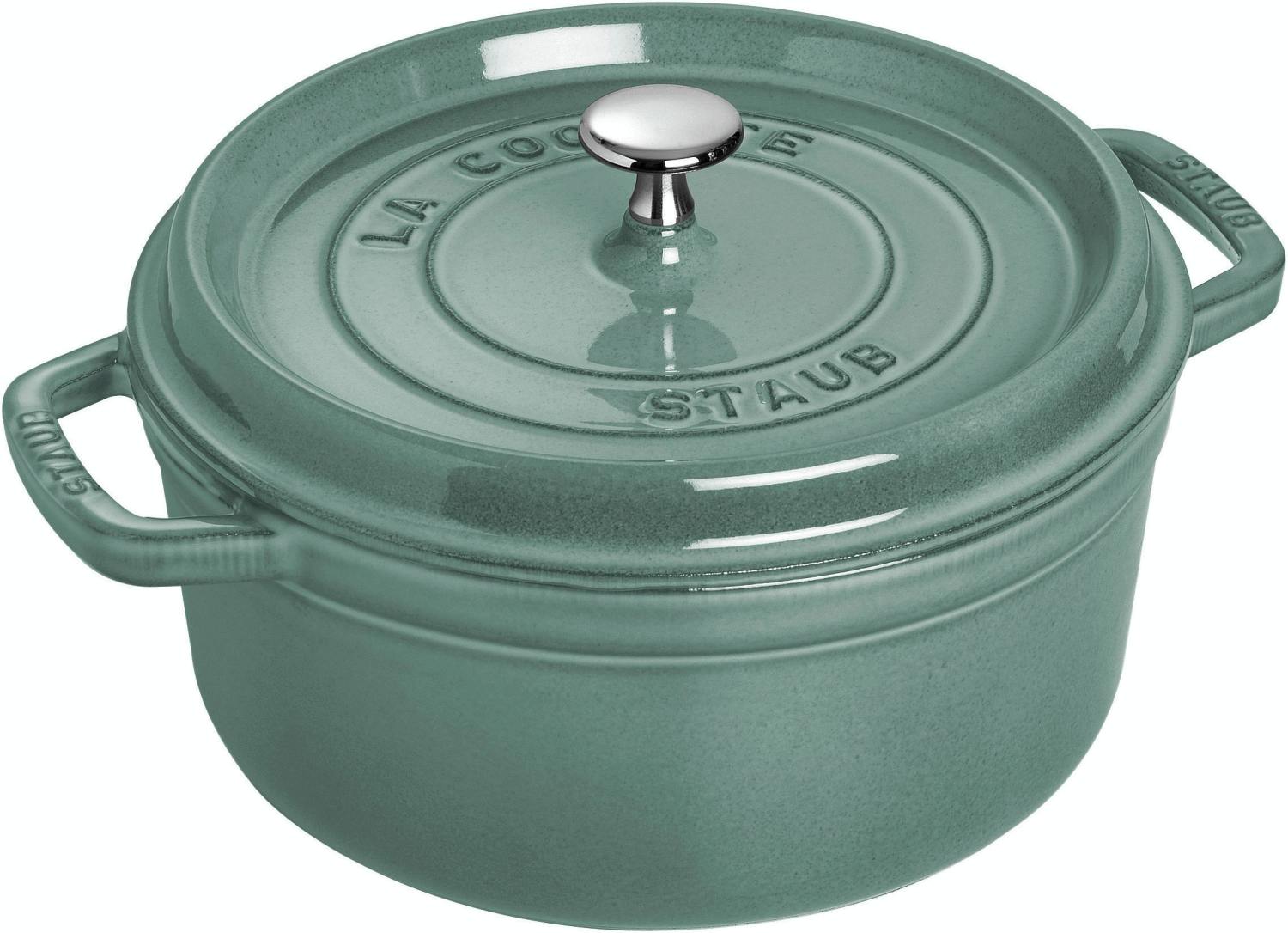 Mit dieser Staub La Cocotte in der bezaubernden Farbe Eukalyptus holst du dir ein Stück französische Kochkunst direkt in deine Küche. Diese 26 cm große Gusseisen-Cocotte vereint traditionelle Handwerkskunst mit modernster Funktionalität und verwandelt jeden Kochvorgang in ein kulinarisches Erlebnis der Extraklasse.Das hochwertige Gusseisen dieser außergewöhnlichen Cocotte verteilt die Wärme gleichmäßig über den gesamten Boden und sorgt dafür, dass deine Zutaten schonend gegart werden, während sie ihre natürlichen Aromen und wertvollen Nährstoffe bewahren. Mit ihrem großzügigen Fassungsvermögen von 5,2 Litern eignet sie sich perfekt für Familiengerichte und gesellige Abende mit Freunden.