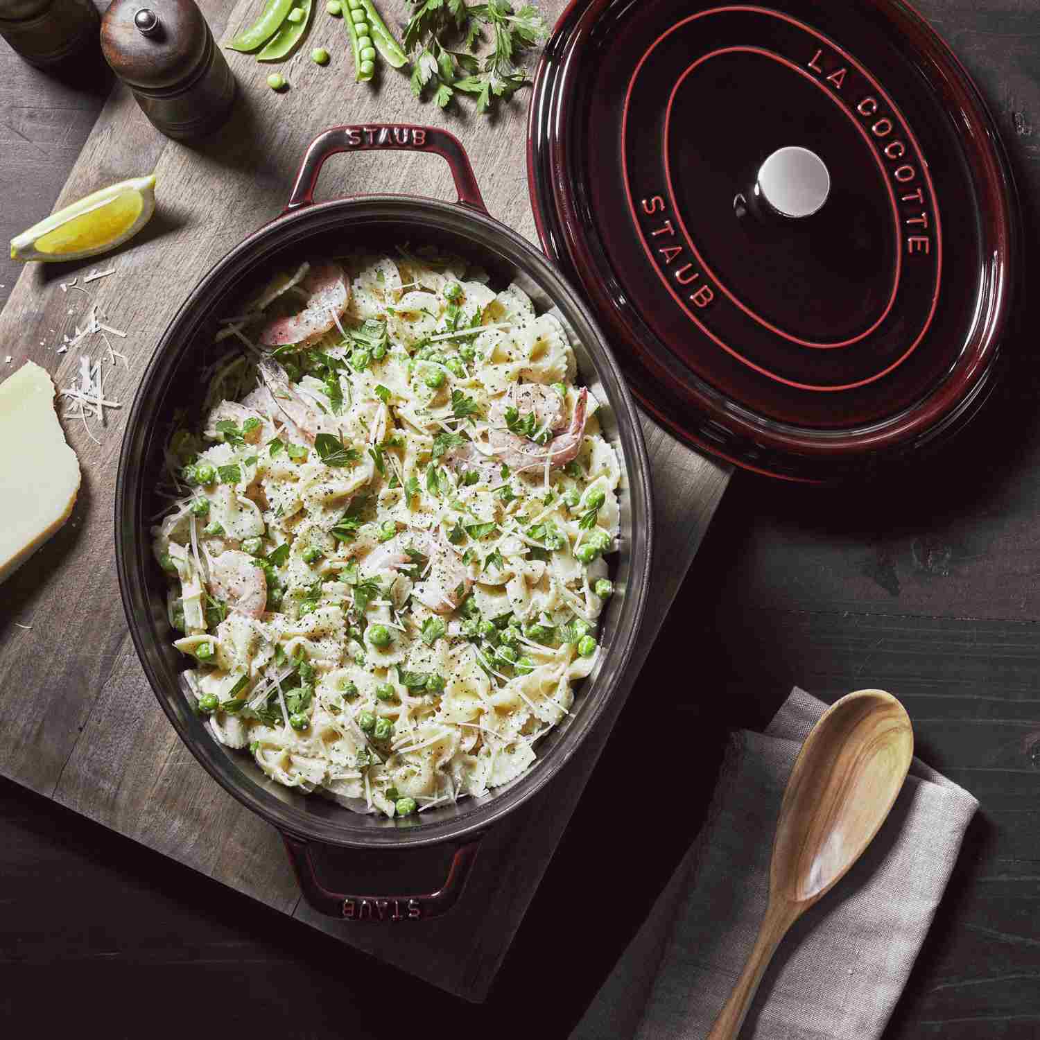 Mit dieser ovalen Cocotte von Staub holst du dir authentische französische Kochkultur direkt in dein Zuhause. Das charakteristische Gusseisen in der wunderschönen Grenadine-Farbe vereint Funktionalität mit zeitloser Eleganz und wird zum natürlichen Mittelpunkt deines Esstisches, da du direkt vom Herd zum Tisch servieren kannst.Die einzigartigen Eigenschaften des Gusseisens sorgen für eine außergewöhnliche Wärmeverteilung, die während des gesamten Garprozesses die Temperatur konstant hält. Die schwarze Emaillierung im Inneren arbeitet perfekt mit dem Gusseisen zusammen und gibt die Wärme langsam und gleichmäßig ab. Das Ergebnis sind zartes Fleisch und perfekt gegarte Gemüse. Diese Materialkombination macht die Cocotte ideal für sowohl langsame Schmorgerichte als auch schnelles Anbraten.