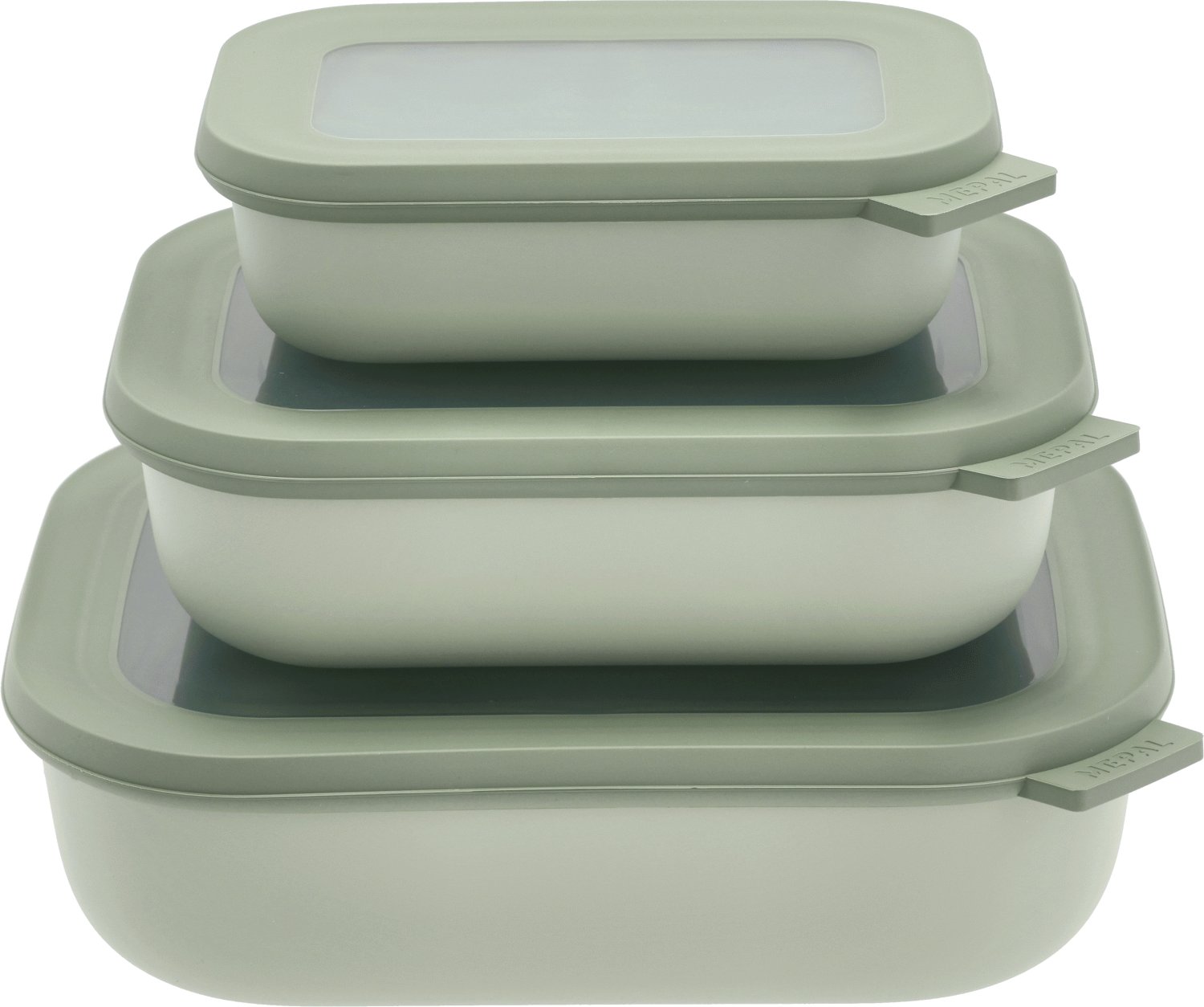 Mepal Cirqula Niedriges Rechteckiges Schalenset mit Deckel 3er Set, Nordic Sage