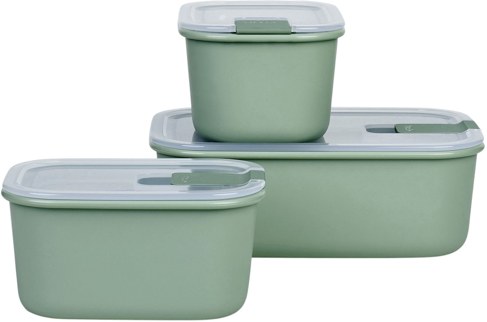 Mit diesem praktischen Haushaltsbox-Set von Mepal bringst du Ordnung und skandinavische Eleganz in deine Küche. Die drei EasyClip-Boxen in der beruhigenden Nordic Sage Farbe vereinen durchdachte Funktionalität mit zeitlosem Design und machen die tägliche Küchenorganisation zum Kinderspiel.Das Herzstück dieser innovativen Aufbewahrungslösung ist das clevere EasyClip-System, das dir ermöglicht, die Boxen mühelos mit nur einer Hand zu öffnen und zu schließen – ideal wenn du beim Kochen die Hände voll hast. Das zufriedenstellende Klick-Geräusch beim Verschließen signalisiert dir, dass deine Lebensmittel 100%ig luftdicht verschlossen sind und ihre Frische sowie ihr Aroma optimal bewahren.