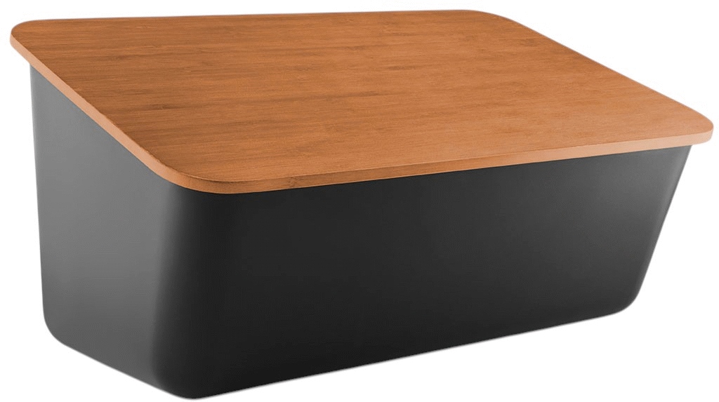 Das Besondere an diesem Brotkasten ist sein FSC®-zertifizierter Deckel aus karbonisiertem Bambus, der gleichzeitig als Schneidebrett fungiert. Du kannst dein Brot direkt auf dem Deckel schneiden, während die eingearbeiteten Rillen praktisch die Krümel auffangen. Diese clevere Lösung spart Platz und reduziert den Abwasch – typisch skandinavische Effizienz.