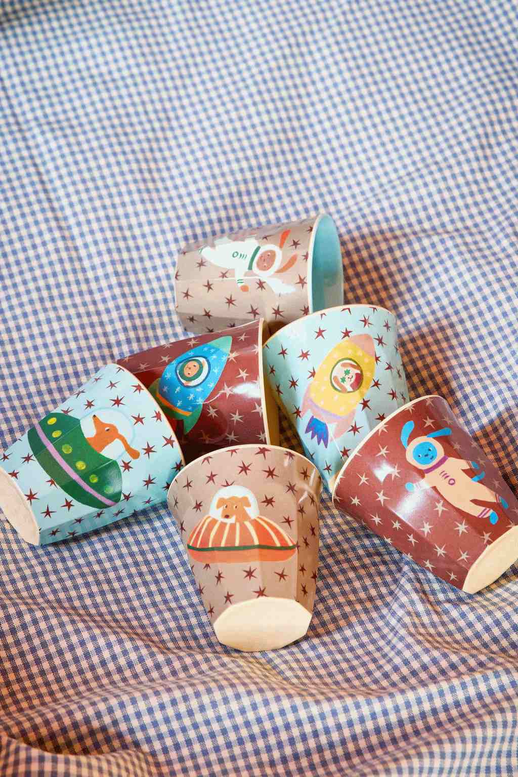 - Set mit 6 Tassen à 16 cl im verspielten Dogs in Space-Design