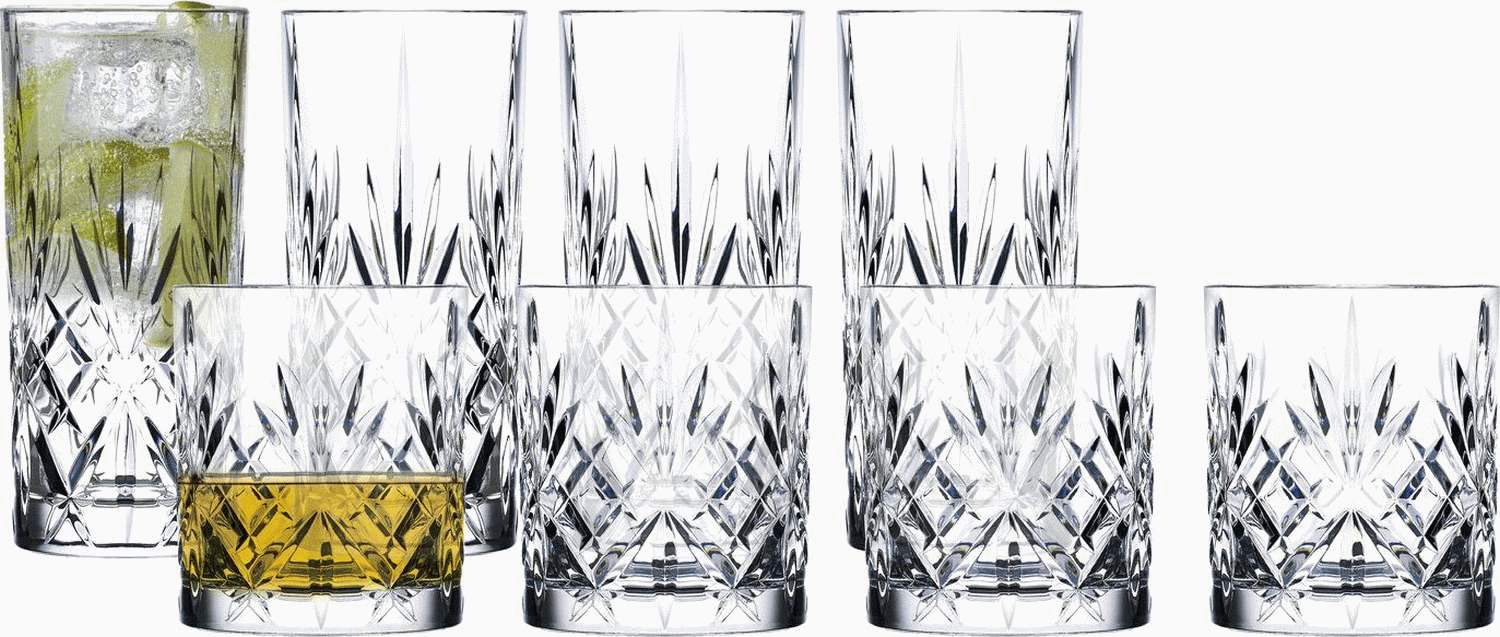 Das 8-teilige Set besteht aus vier Whiskygläsern mit 31 cl und vier Highballgläsern mit 36 cl Fassungsvermögen, alle gefertigt aus ultraklarem Kristallglas höchster Qualität. Das charakteristische Muster im Glas erzeugt ein faszinierendes Spiel aus Licht und Schatten, das die Nuancen deiner Getränke hervorhebt und jeder Verkostung eine besondere visuelle Dimension verleiht. Wenn das Licht durch das wunderschöne Kristallglas fällt, entsteht ein nahezu magischer Effekt, der jeden Drink zu etwas Besonderem macht.