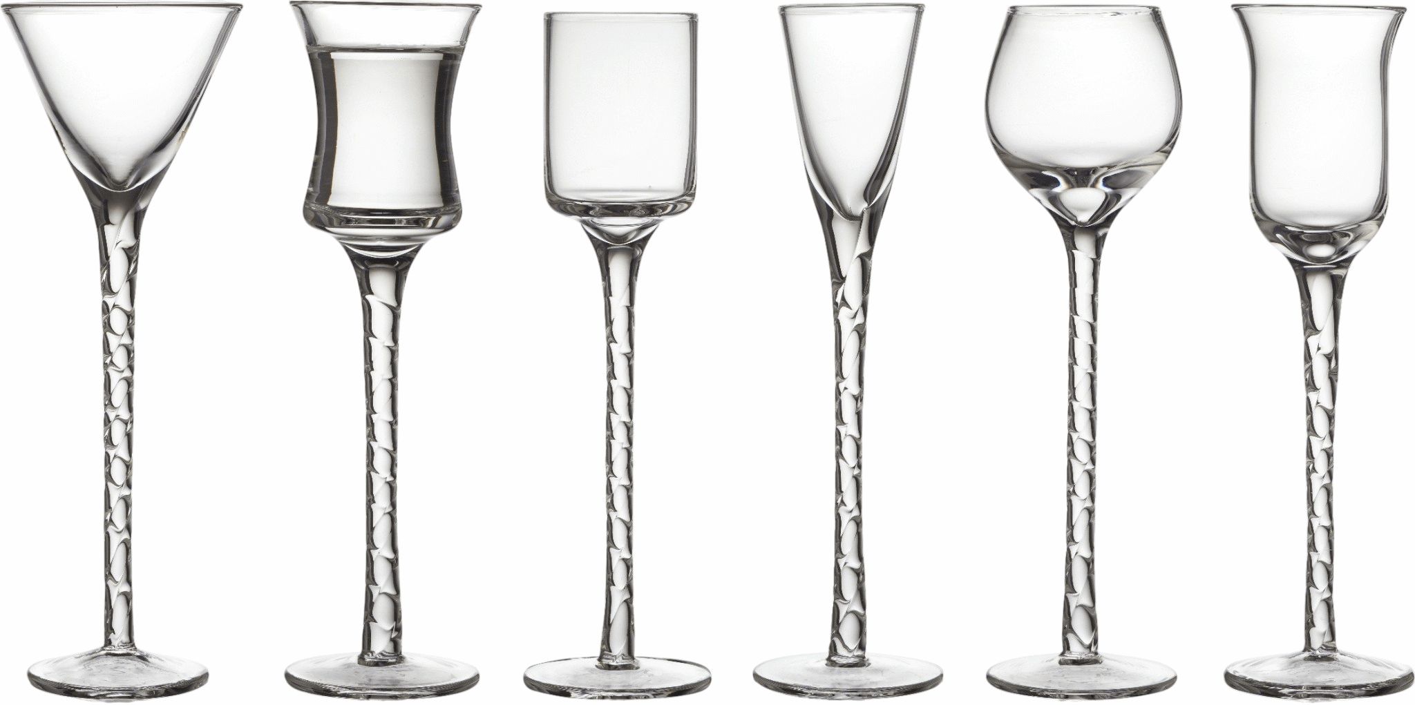 Die klaren Gläser mit ihren variierenden gedrehten Stielen sind ein wahres Kunstwerk traditioneller Glasmacherkunst. Das Volumen der einzelnen Gläser variiert zwischen 2,5 und 5 cl, was dir maximale Flexibilität beim Servieren verschiedener Spirituosen und Schnäpse bietet – je nach Anlass und persönlichem Geschmack. Mit einer eleganten Höhe von 18 cm setzen diese Gläser stilvolle Akzente auf jedem festlich gedeckten Tisch.