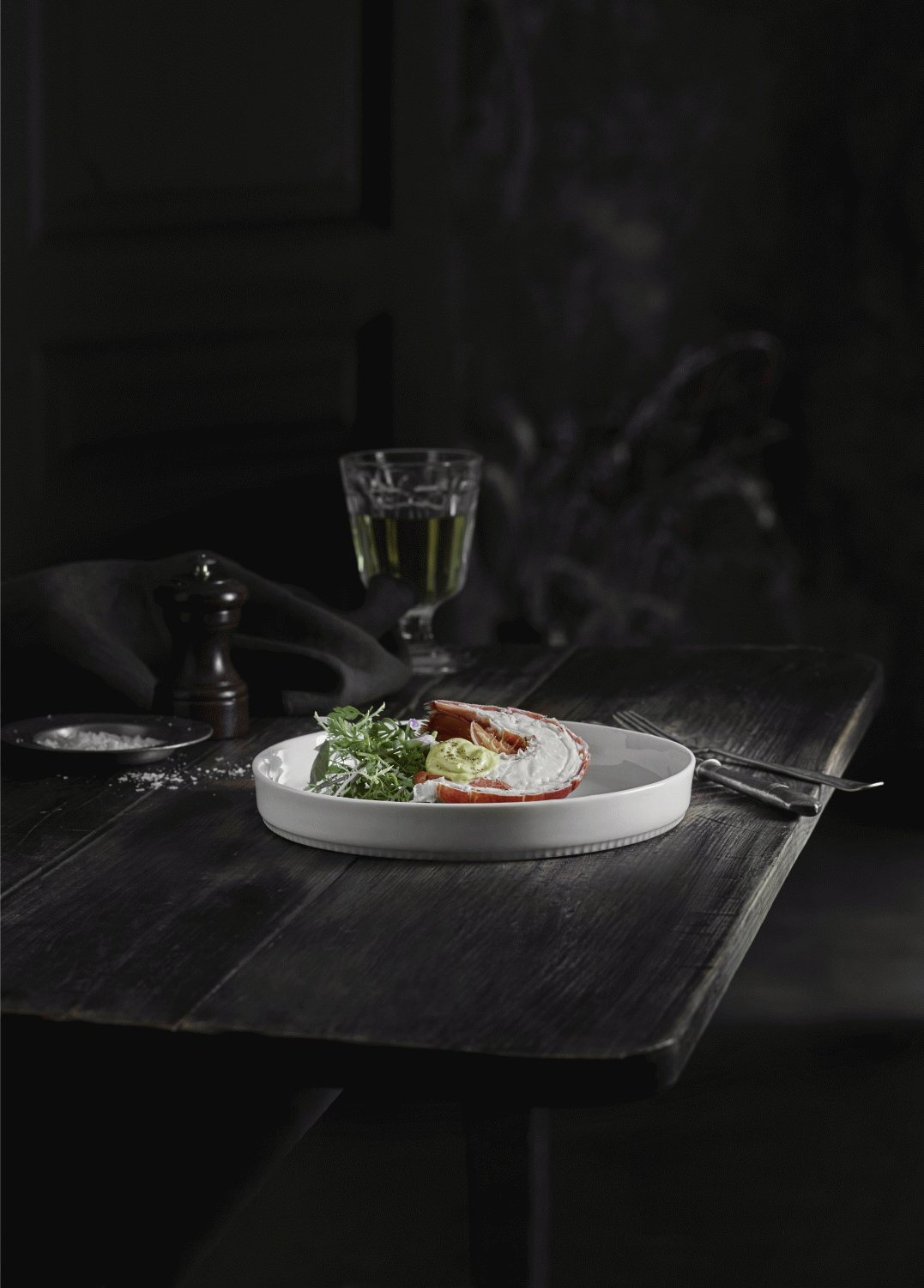 Der Teller eignet sich ideal für die Präsentation von Salaten und Pastagerichten, wobei der gerade Rand dafür sorgt, dass die Speisen sicher auf dem Teller bleiben. Das stilreine Design hebt die Farben und Kompositionen deiner Mahlzeiten wunderbar hervor und macht jedes Gericht zu einem visuellen Erlebnis.