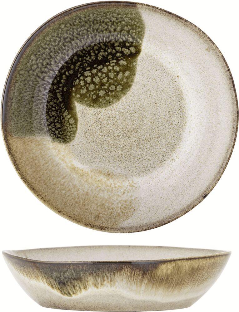 Mit diesem tiefen Teller aus der Jules-Serie von Bloomingville holst du dir natürliche Eleganz direkt auf den Tisch. Die harmonische Kombination aus beigen und grünen Nuancen verleiht deinem Geschirr einen organischen, erdverbundenen Look, der sowohl in modernen als auch in klassischen Küchen wunderbar zur Geltung kommt. Der charakteristische braune Rand rundet das Design ab und sorgt für einen warmen, einladenden Eindruck, der bei jedem Essen für Gemütlichkeit sorgt.Dieser tiefe Teller mit einem Durchmesser von 22 cm ist aus hochwertigem Steinzeug gefertigt und überzeugt durch seine Langlebigkeit und Widerstandsfähigkeit. Die reaktive Glasur ist das Besondere an diesem Stück: Während des Brennvorgangs reagiert die Glasur und erzeugt einzigartige Variationen in Muster und Farbintensität. Das bedeutet, dass kein Teller dem anderen gleicht – jedes Exemplar hat seinen eigenen Charakter und sein eigenes Flair. Die sanften Übergänge zwischen Beige und Grün schaffen ein lebendiges Farbenspiel, das deinen Tisch zu etwas ganz Besonderem macht.