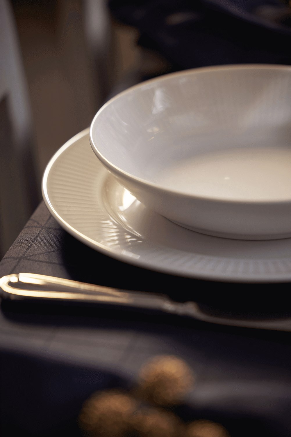 Die charakteristischen plissierten Linien, die diesen Teller schmücken, stammen aus Pillivuyts ursprünglichen Gussformen vom Beginn des 20. Jahrhunderts und repräsentieren eine zeitlose Designtradition, die über Generationen hinweg relevant geblieben ist. Jeder Teller der Plissé-Serie zeugt von Pillivuyts außergewöhnlicher Handwerkskunst und sorgfältiger Aufmerksamkeit für Details.