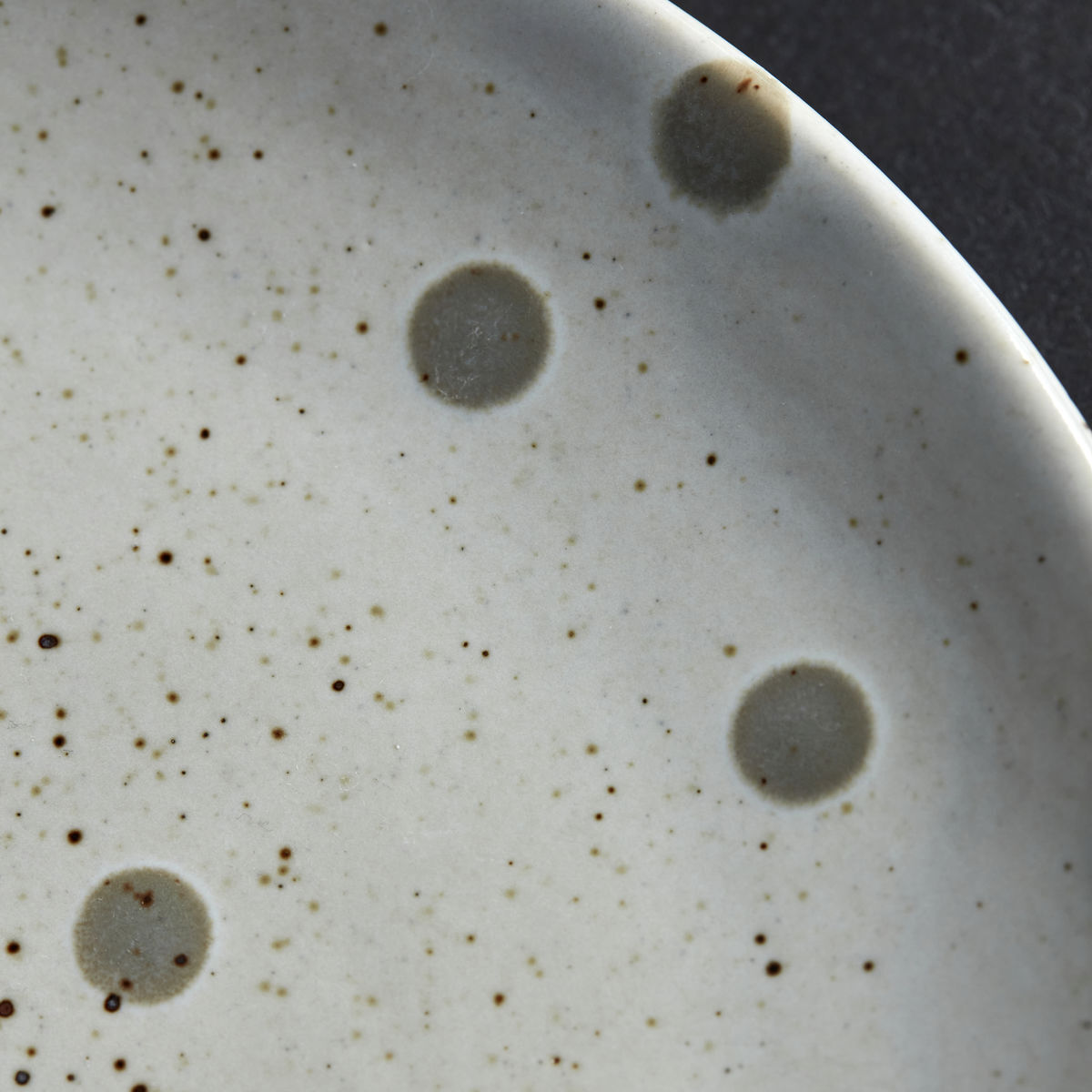 Dieser Teller Dots ist die ideale Wahl, wenn Sie Freunde zu Besuch haben und einen einzigartigen und informellen Tisch decken möchten. Der Teller ist mit einem skurrilen Muster aus grünen Punkten verziert, die mit Ihrem Lieblingsgeschirr gemischt oder neben Schüsseln und Tellern mit demselben Design platziert werden können. Verwenden Sie den Steingutteller für das Mittagessen, einen schnellen Snack oder andere Leckereien. Die Punkte bilden einen schönen Kontrast zu den dunklen und minimalistischen Gegenständen auf dem Esstisch. Kombinieren Sie Punkte und Streifen mit verschiedenen Oberflächen. Dots zeichnet sich durch seine gedeckten Farben aus. Nicht zu viel, um überwältigend zu sein, aber gerade genug, um die Aufmerksamkeit auf sich zu ziehen.