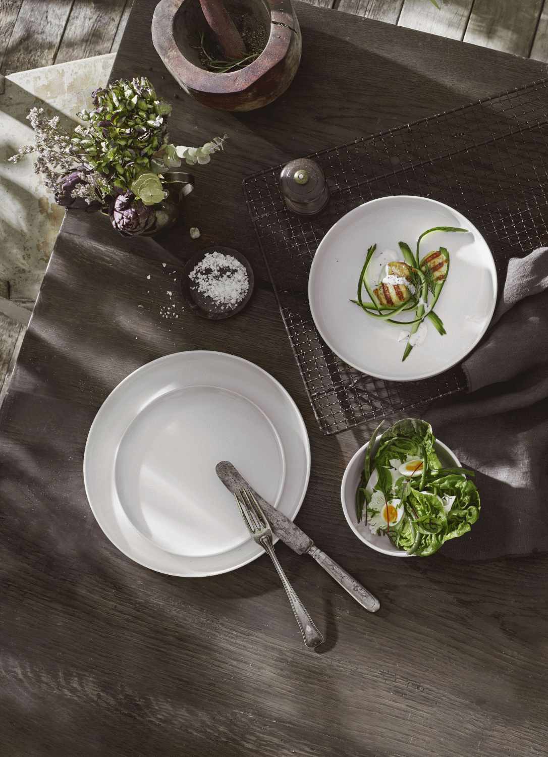 - Flacher Teller mit gerader Kante, perfekt für Hauptgerichte