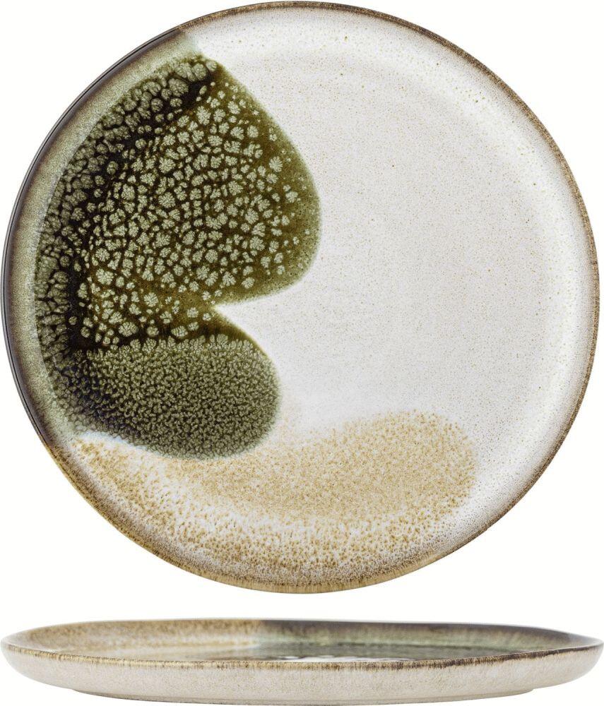 Mit dem Jules Teller von Bloomingville holst du dir natürliche Eleganz und skandinavisches Design direkt auf deinen Tisch. Dieser charaktervolle Teller aus hochwertigem Steinzeug verbindet organische Formen mit gedämpften Farben und verwandelt jede Mahlzeit in ein ästhetisches Erlebnis. Die reaktive Glasur sorgt für eine lebendige, dynamische Oberfläche, bei der sanfte Farbübergänge in warmen Grüntönen mit feinen, blattartigen Details harmonieren und dem Teller einen künstlerischen Touch verleihen.Die braune Kante rahmt das Design elegant ein, während die leicht gesprenkelte Oberfläche das authentische, handwerkliche Flair unterstreicht. Bloomingville steht für Produkte, die skandinavische Designtradition mit funktionaler Qualität vereinen – der Jules Teller ist ein perfektes Beispiel dafür. Jedes Stück besitzt durch die reaktive Glasur seinen eigenen, unverwechselbaren Charakter. Kleine Variationen in Muster und Farbintensität machen jeden Teller zu einem Unikat mit persönlicher Identität und besonderem Charme.