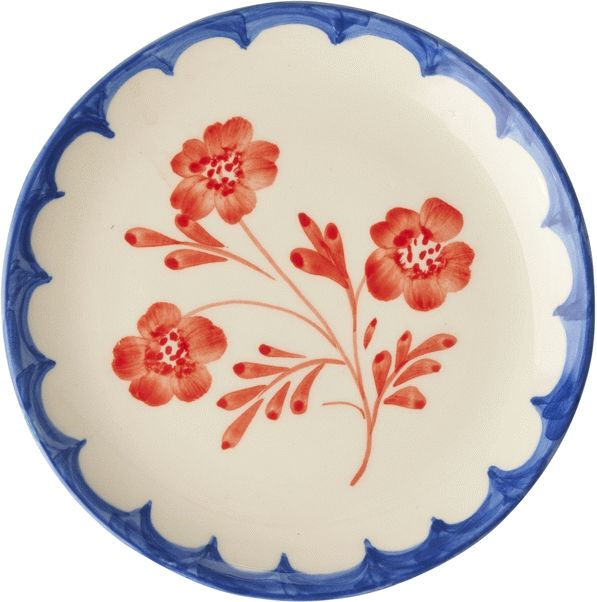 Mit diesem handbemalten Keramikteller von RICE holst du dir die authentische portugiesische Handwerkstradition direkt in dein Zuhause. Das vintage-inspirierte Blumendesign mit seinen leuchtend orangen Blüten und dem eleganten dunkelblauen Rand schafft eine warme, einladende Atmosphäre an deinem Esstisch.Der 15 cm Durchmesser macht diesen Teller zur idealen Wahl für das Servieren von Kuchen, Keksen oder als dekorativen Akzent in deinem Gedeck. Jeder einzelne Teller wird von talentierten portugiesischen Handwerkerinnen sorgfältig von Hand bemalt, wodurch dein Teller zu einem absolut einzigartigen Kunstwerk wird. Die natürlichen Variationen, die durch den handgefertigten Herstellungsprozess entstehen, sind keine Fehler, sondern verleihen jedem Stück seinen authentischen Charme und seine individuelle Persönlichkeit.