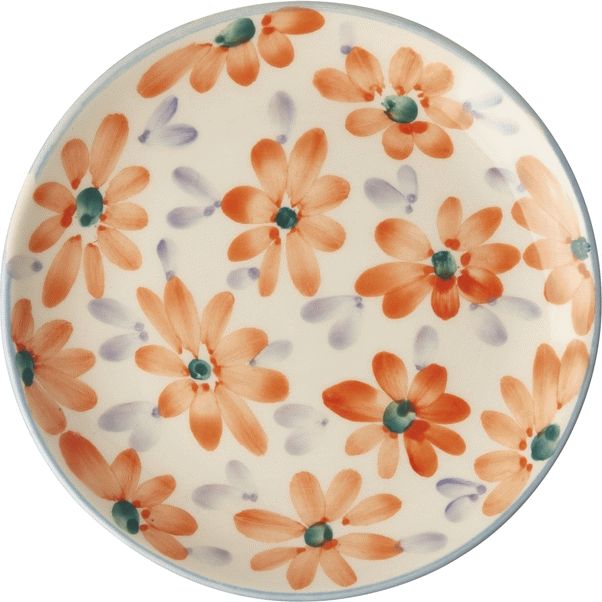 - Handbemalter Keramikteller mit orangefarbenem Blütenmotiv