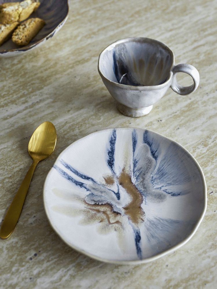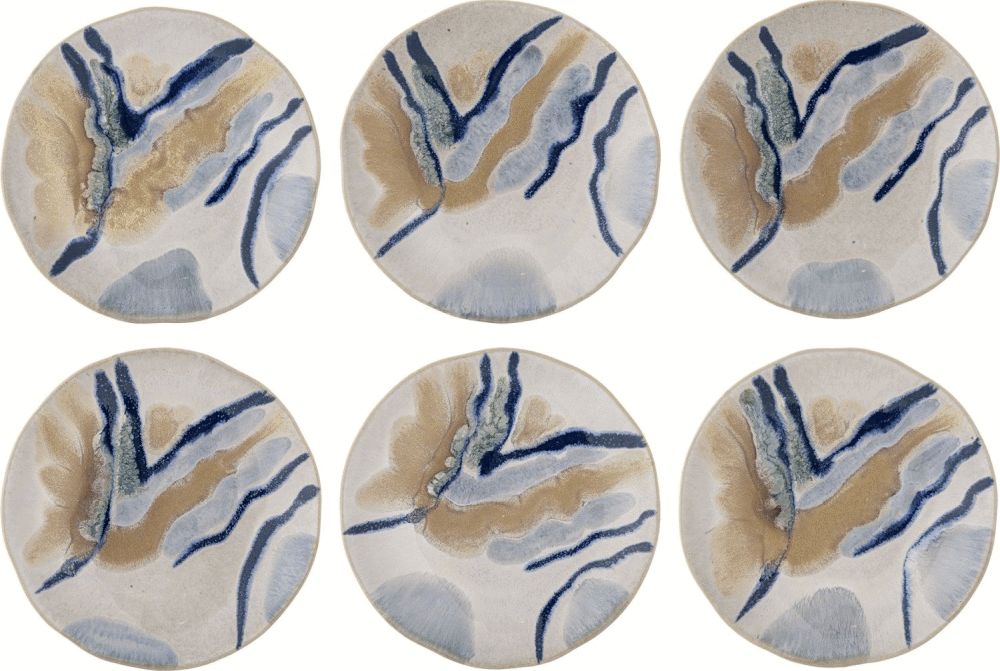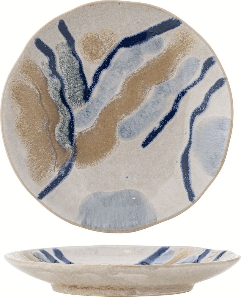Gefertigt aus robustem Steinzeug und veredelt mit einer reaktiven Glasur, entsteht eine lebendige, aquarellartige Oberfläche, die jeden Tisch bereichert. Die sanften Beigetöne verschmelzen mit fließenden Akzenten, die an Pinselstriche auf Leinwand erinnern. Das Ergebnis ist ein ruhiger und harmonischer Ausdruck, bei dem jeder Teller seinen ganz eigenen, unverwechselbaren Charakter erhält. Kleine Variationen in Muster und Farbintensität sind ein natürlicher Bestandteil des Herstellungsprozesses und unterstreichen den handwerklichen Charakter dieses Geschirrstücks.