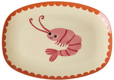 - Rechteckiger Teller mit verspieltem „New Shrimp"-Print